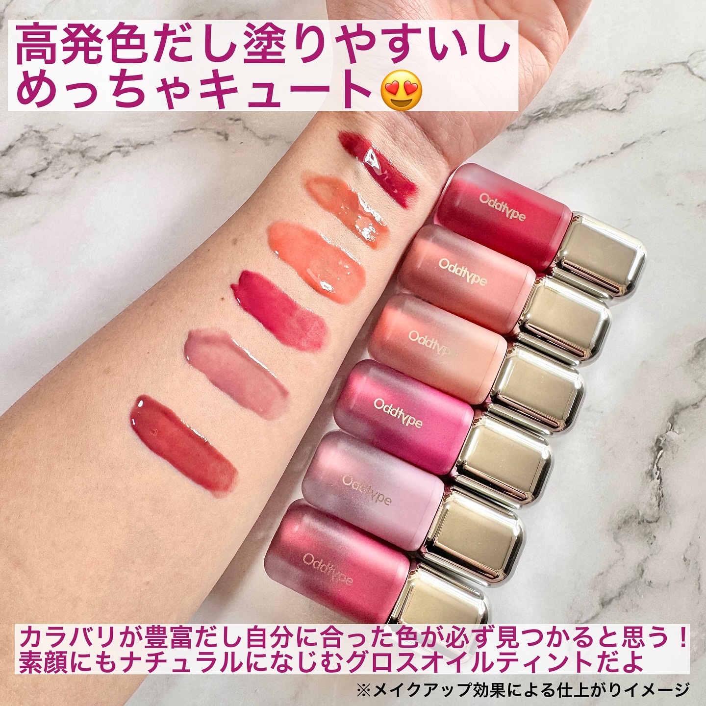 2024年10月に日本上陸した韓国オンライン・ファッション・プラットフォーム “MUSINSA”のビューティブランド🔸 oddtype (オッドタイプ)🔸 どのカラーも透け感があって浮きにくく、唇をぷるんと見せてくれる感じ🫶 アプリケーターはハードとソフトの毛が入り混じったブラシタイプ!たっぷりリップの液を含んで唇に塗布できるからぷるぷるになるよ😍