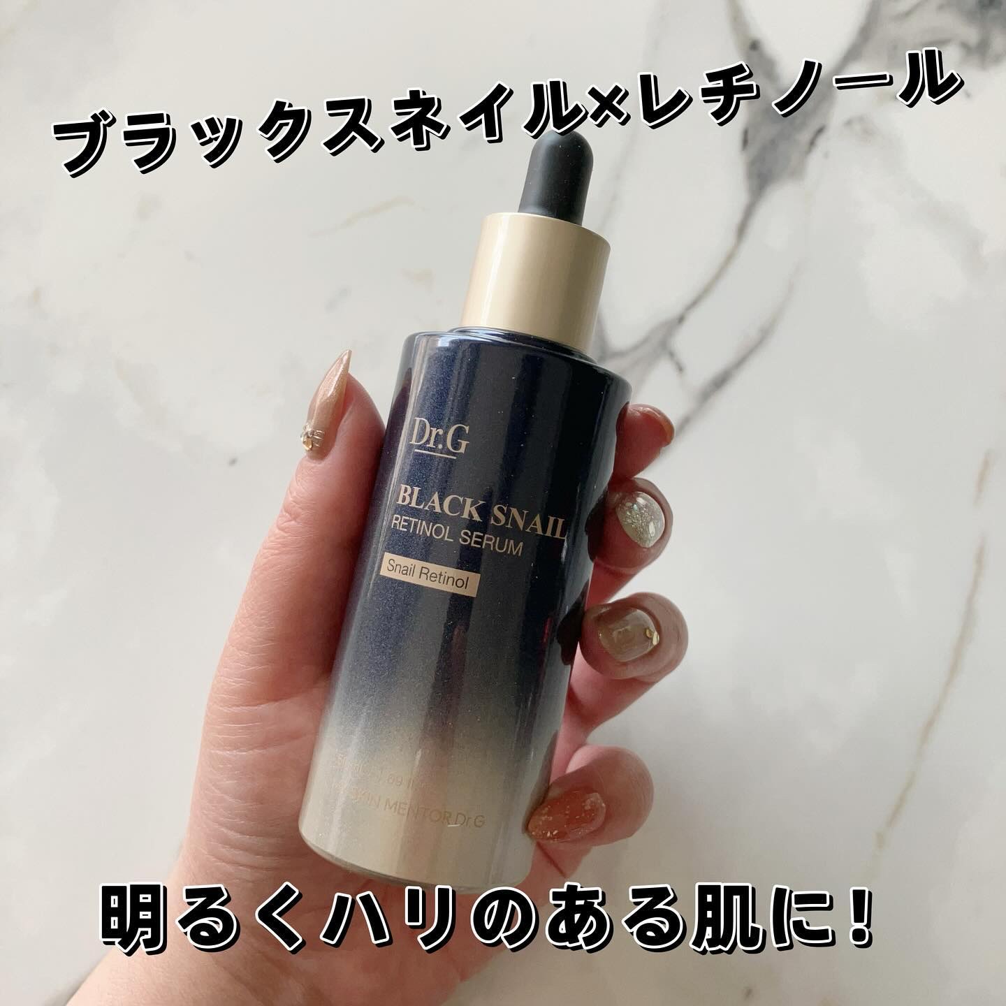 - ブラックスネイル*とレチノール*を配合した、若々しい肌印象に導く美容液です。 Dr.Gのレチノールは独自の成分である、ブラックスネイルレチノール*を使っています! 肌に高い保湿感を与え、肌のキメを整え、弾力やハリのケアを助けるだけでなく、肌の乾燥くすみをケアし、明るい印象のぷるんっとハリのある肌に導きます。 *整肌成分