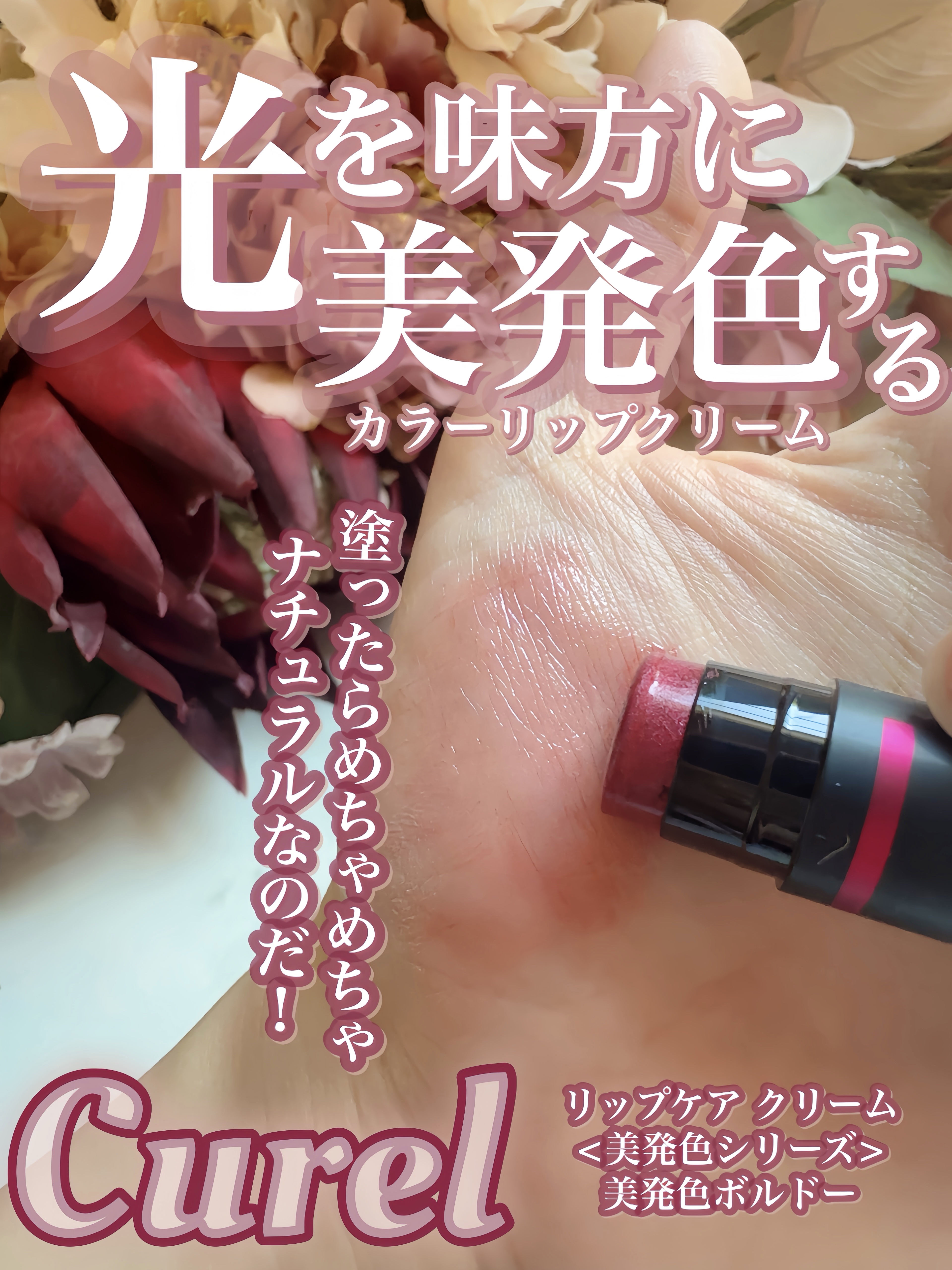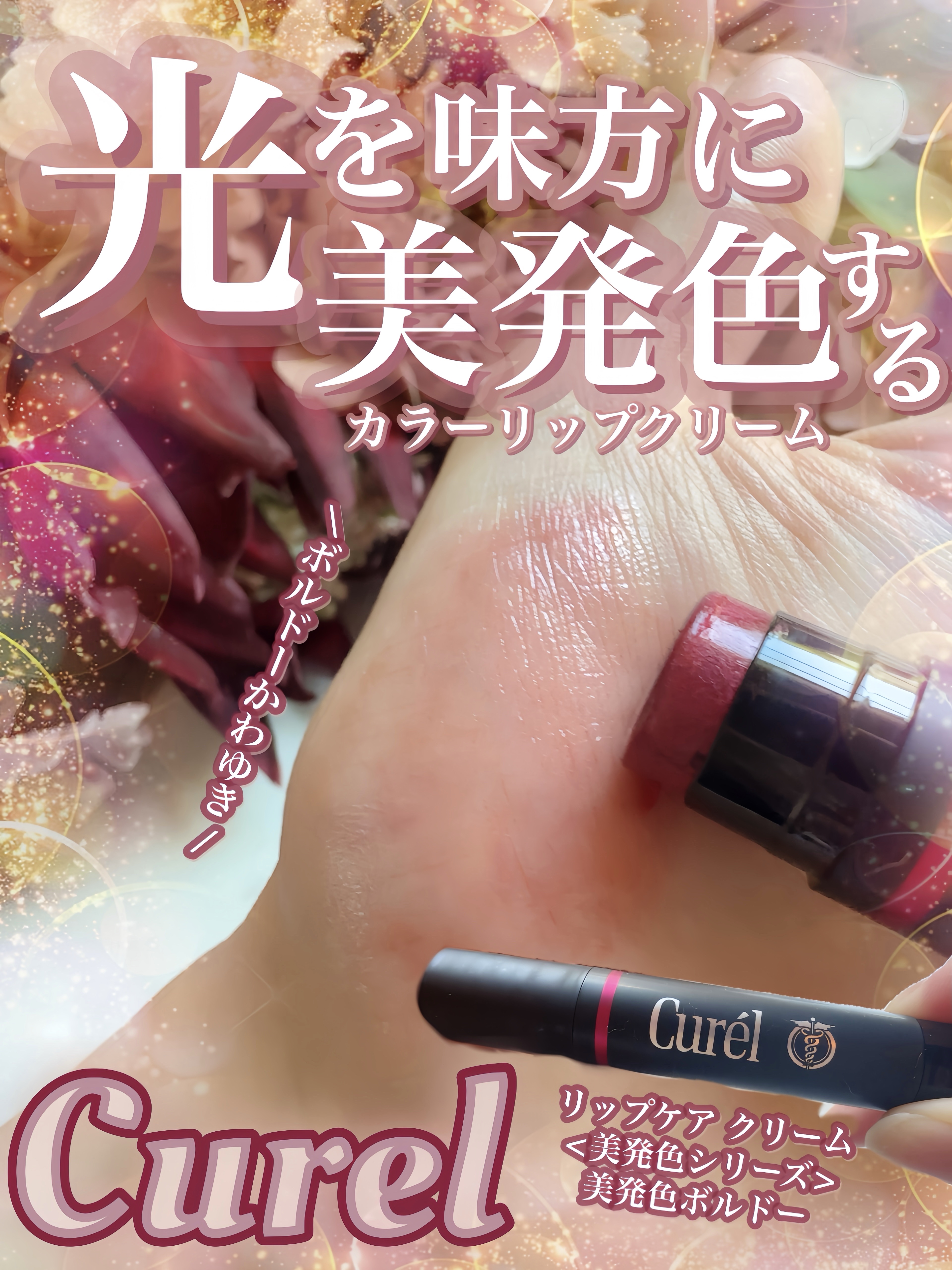- 【敏感肌用】 潤いも美発色もゆずれない、乾燥して敏感になりがちな唇に。 光を味方に、美発色するカラーリップクリーム。 ●光発色処方 パールによる光の反射で立体感ある自然で明るい唇色に見せる 合成色素(タール系色素)無配合 ●セラミドケア*1 潤い成分(セラミド機能成分*2)が唇の角層に浸透し、乾燥などの外部刺激から保護 ●乾燥性敏感肌を考えた低刺激設計 *1 「セラミド」の働きを補い 潤いを与える *2 セチルPGヒドロキシエチルパルミタミド 商品に関するお問い合わせ 受付時間9:00~17:00(土曜・日曜・祝日除く) *製品の誤飲・誤食など緊急の場合は、受付時間外でもお電話ください キュレル:0120-165-698