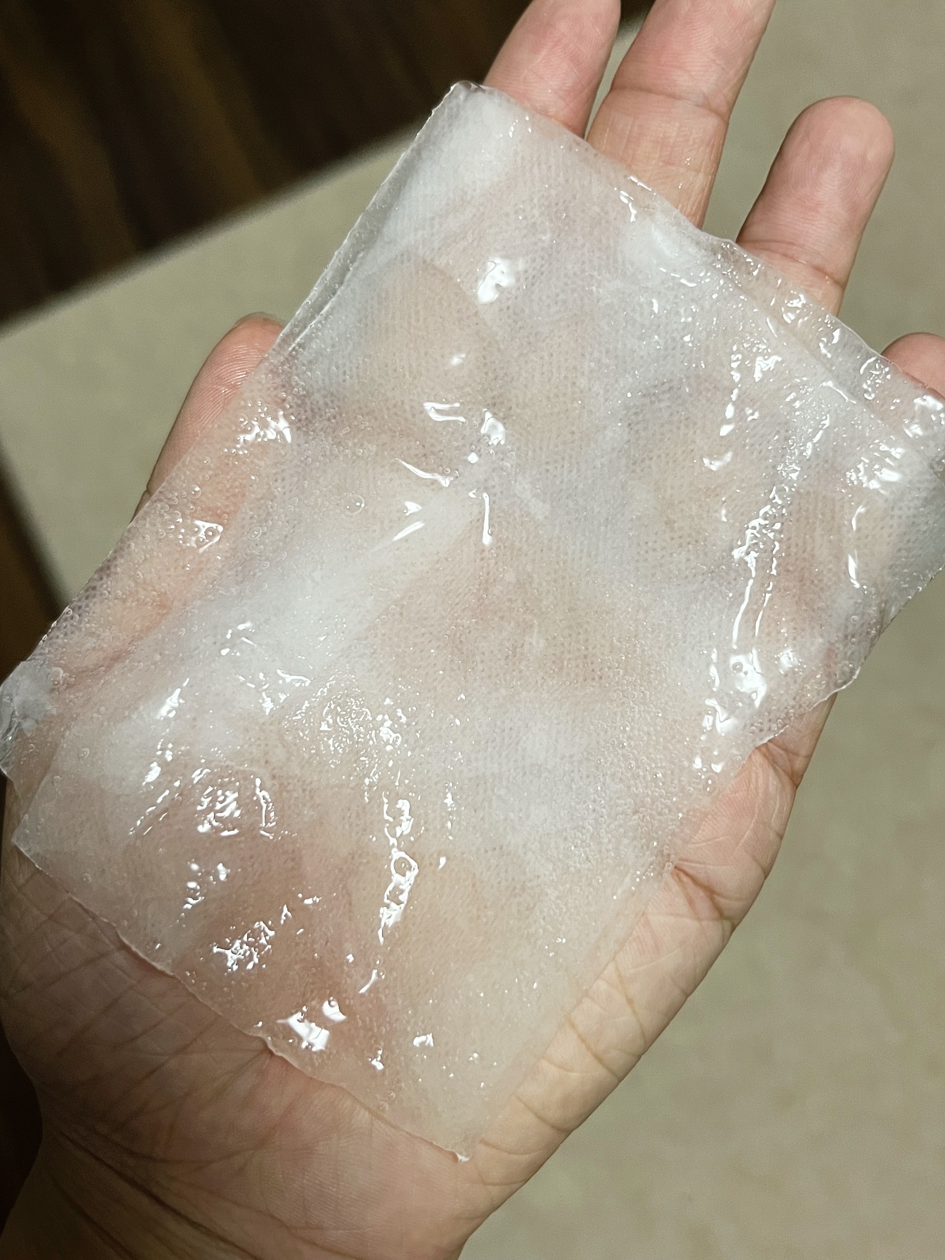 薄くて密着するシート。サラサラで気持ちいいです! シカ成分のせいなのかピリピリとした感じ。母はピリピリしないみたいなので、個人的に合わないのかもしれません。 つけた後はもちもちサラサラになるので仕上がりはいいです。