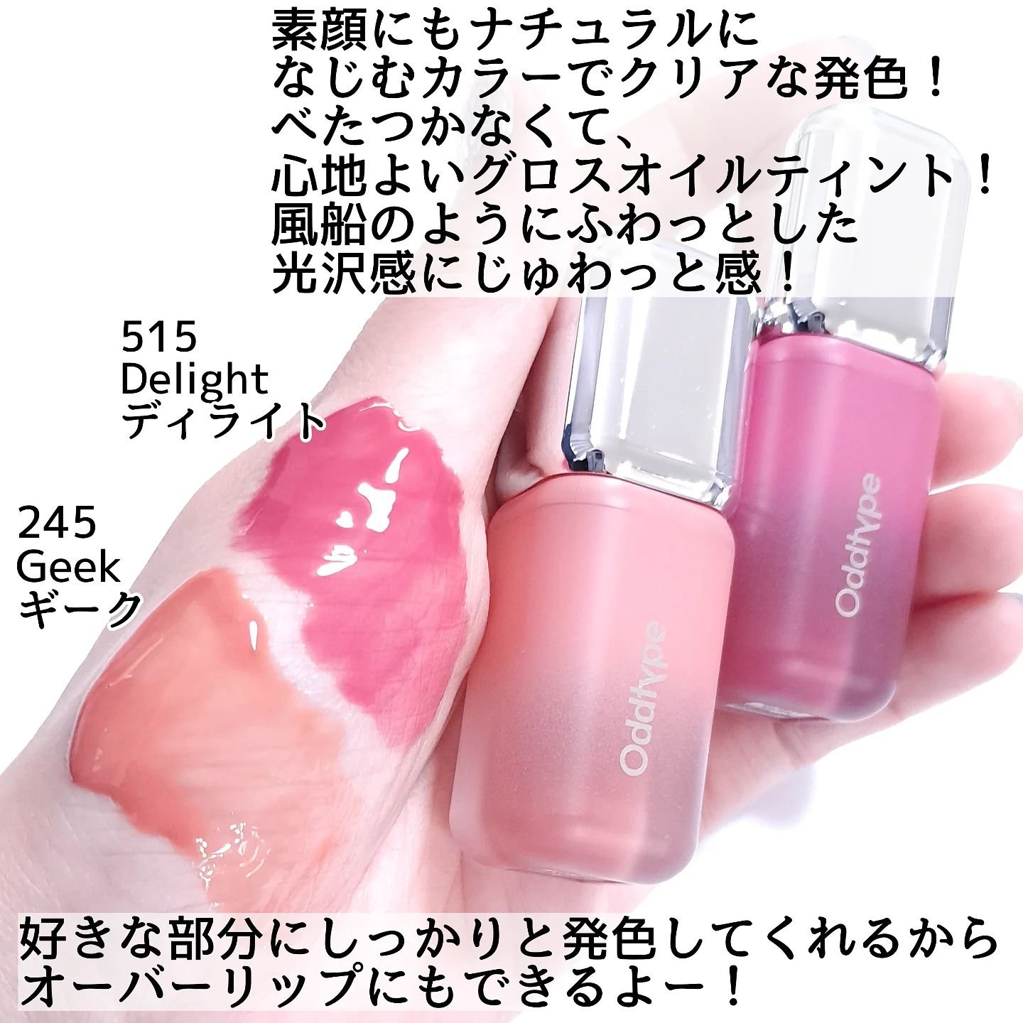 韓国の人気ファッションブランド「MUSINSA(ムシンサ)」から、ビューティーブランド「oddtype(オッドタイプ)」が誕生🇰🇷❤️ 2024年10月に日本上陸したのでご紹介✨ はっきりとした発色ならこれ✌️💫 ツヤ発色で、しっとりした塗り心地! アプリケーターが縦型ブラシになってる! わたしの推しはこちら💗 透け感があって、ちゅるんとした光沢がでてくれる!アプリケーター斜めカットのブラシで塗れるようになってるの🫧