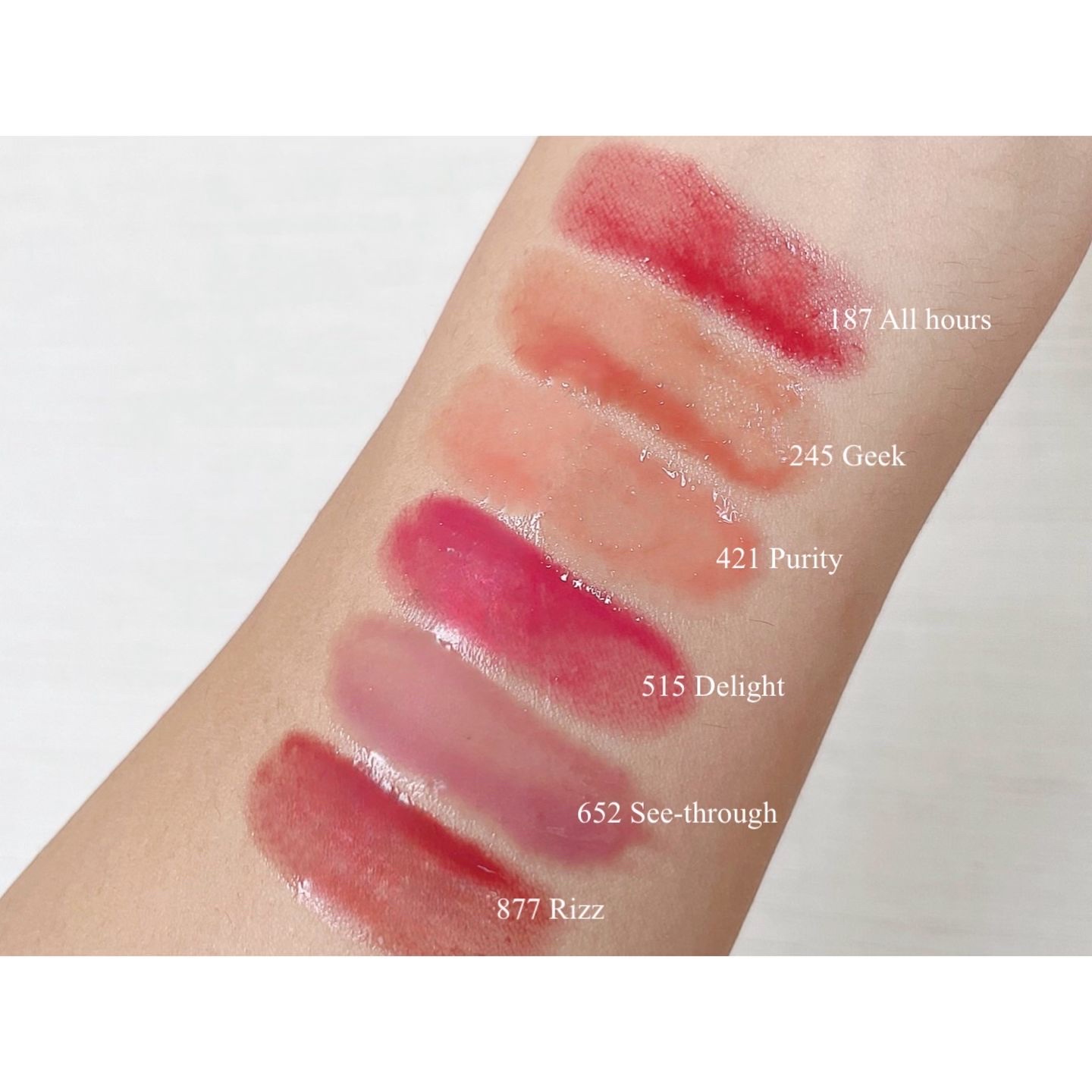 素顔にも自然になじむクリアな発色が魅力的✨ オイルティントならではの軽やかなつけ心地で、使いやすさを実感しました! 風船みたいにふっくらとした光沢感💋 斜めカットのブラシアプリケーターで細かい部分まで塗りやすく、思い通りのリップメイクが楽しめます! ベタつきにくく、快適なつけ心地だったので普段使いにもぴったりです!
