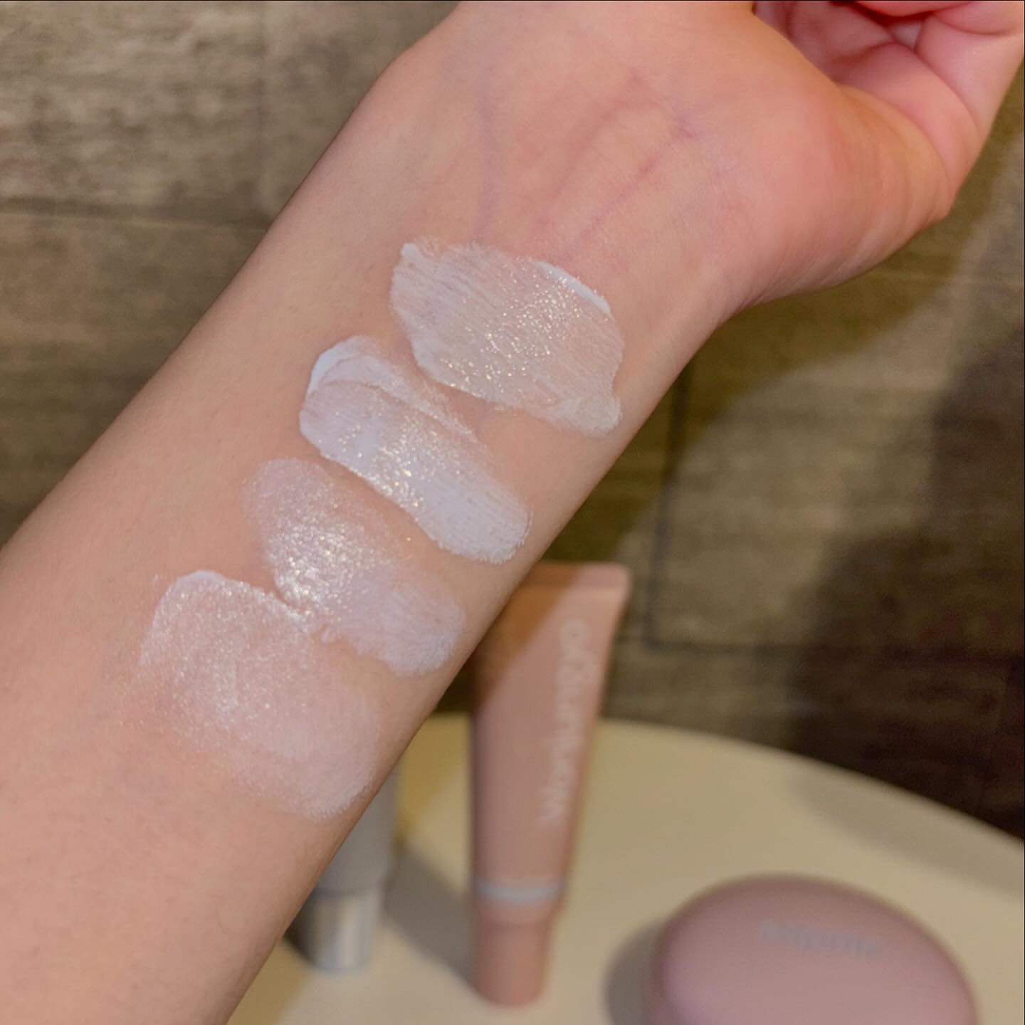 液体自体は蛍光パープルでびっくりするんですが、伸び広げると私の大好きなほんのり青みピンク🥺🩷 水彩という名の通りみずみずしいテクスチャなのでさらっとつけられる!! さらに塗ったあとのちょうど良いツヤ感とちゃんと肌を透かしてくれる透明感ときたらプチプラの域を超えています...