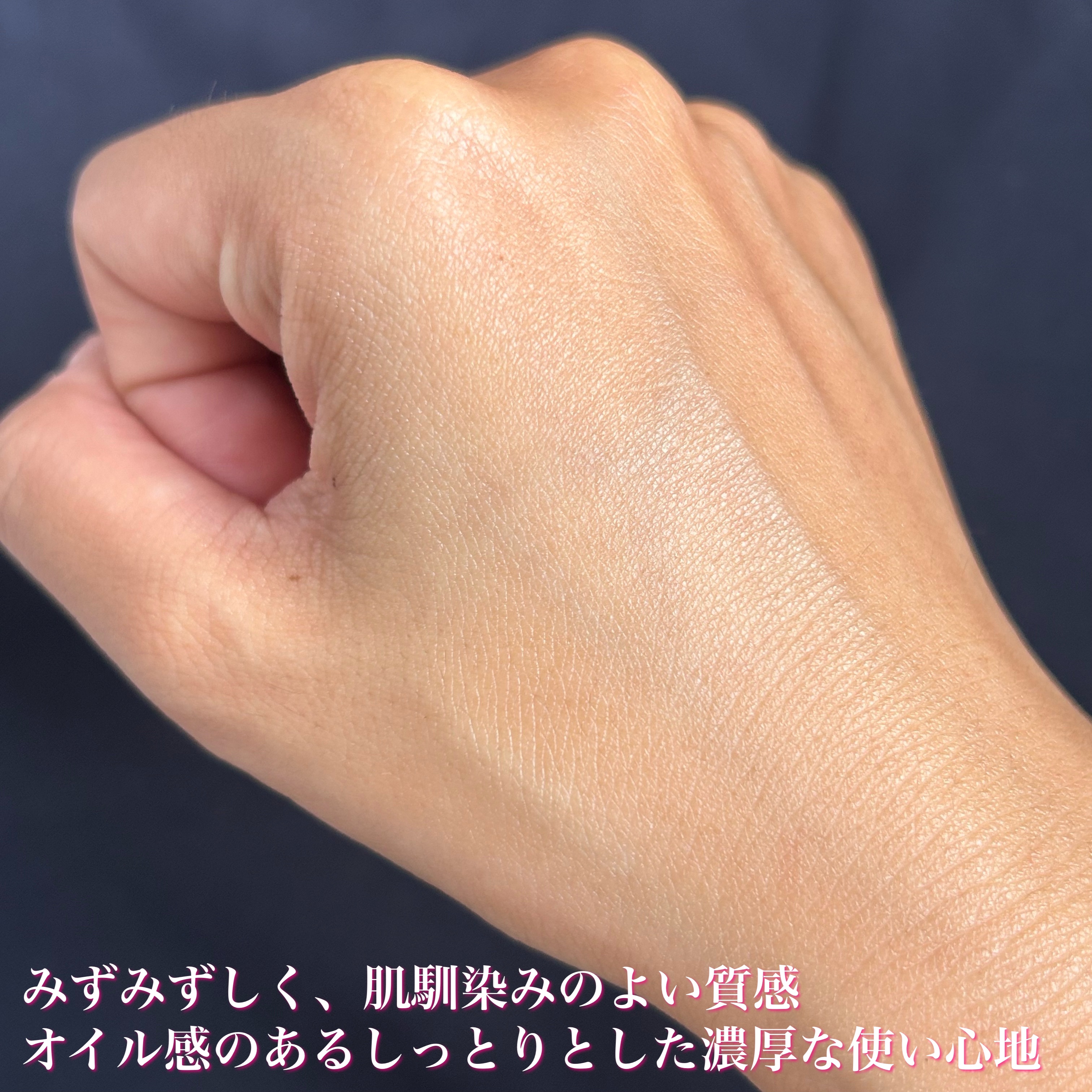美容液成分約90%配合で、オレンジフラワーの甘くて爽やかな香りがふわっとするみずみずしい質感のファンデーション。 下地なしでもムラなく綺麗にフィットし、色ムラや毛穴をふんわりとカバーしてくれます◎ 濃いシミや赤み、クマのカバーにはコンシーラーが必要かなと思います💡 2色展開で01はややピンク寄りのベージュですが、透け感があるのでイエローみのある肌でも問題なく使えました◎ 長時間の使用でも乾燥知らずで、肌への負担も少ないです✨ 素肌感がある仕上がりなので崩れも目立ちにくいですが…下地なしだと若干毛穴部分に白く溜まったり、赤みが浮いてきたりしたのでお直しは必要かなと思います🙂 素肌感ある仕上がりでもより美しく、またしっかりキープするためには下地やパウダー、コンシーラーでのコントロールが必要ですが…1個でも済ませられて、肌も疲れにくいのは非常に魅力的なアイテムです💕 あまり作り込みたくない休日などに使うと良さそうだなと思いました😌