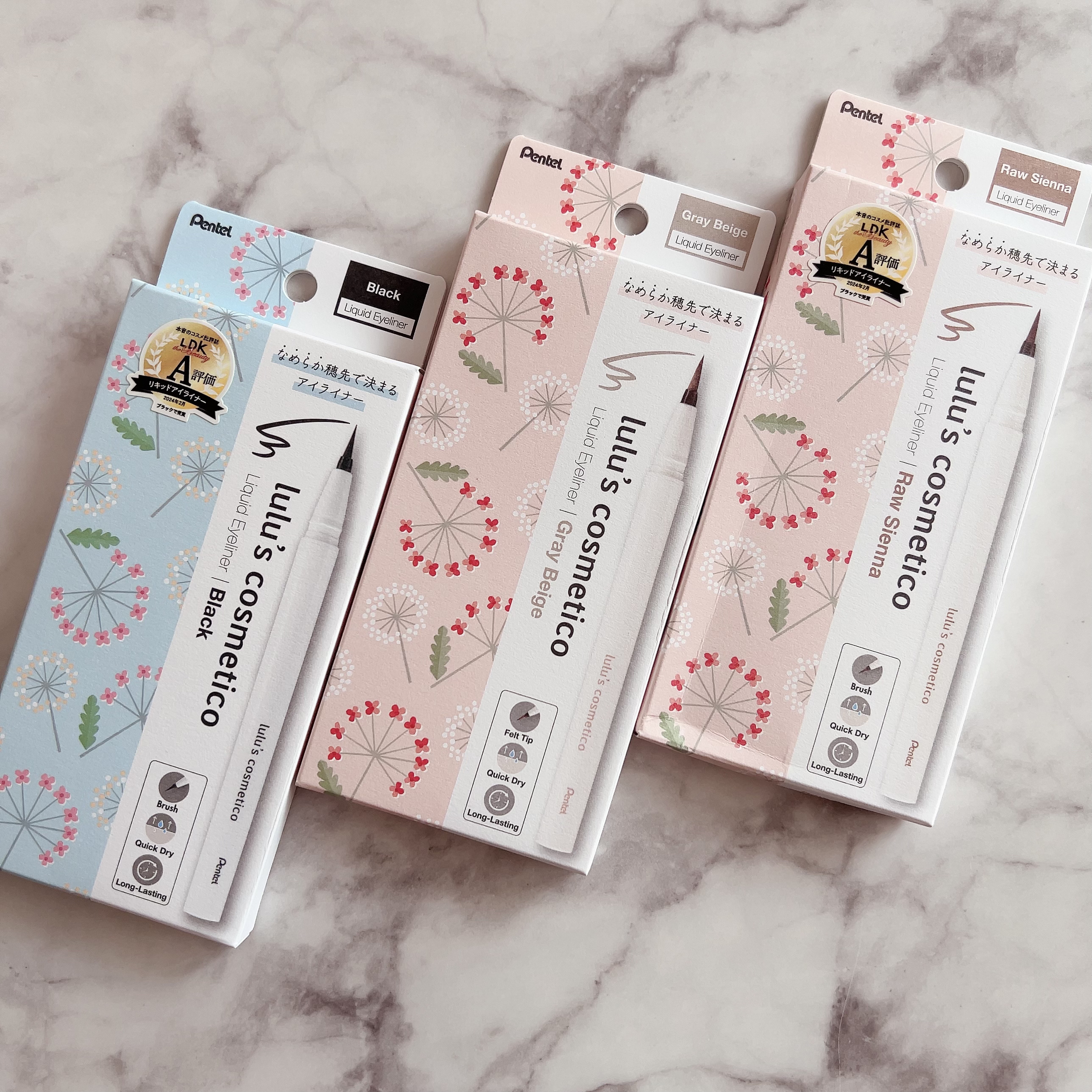 筆記具メーカーのぺんてるの化粧品ブランド「lulu’s cosmetico(ルルズコスメティコ)」 ぺんてる筆の描きやすさ!なめらか穂先のリキッドアイライナー✨ 発色もよくベーシックなカラーから抜け感カラーもあるから気分やシュチュエーションに合わせて使えて目元を鮮やかに演出してくれるよ🌿.∘