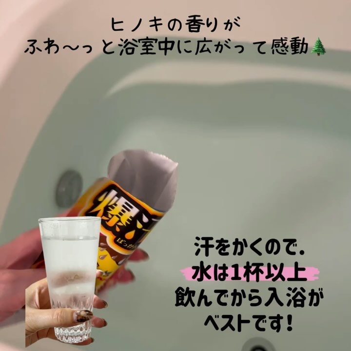 自宅でサウナ気分が味わえる「塩の湯 ヒノキの香り」🛁🫧 浴室がまるでヒノキサウナのような空間に✨ 鳴門産の微細な塩をベースにひきしめHOT成分やエプソムソルトなどをプラス✨ 水を1杯飲んでから入浴すると汗をさらにたくさんかくことができてオススメ💧