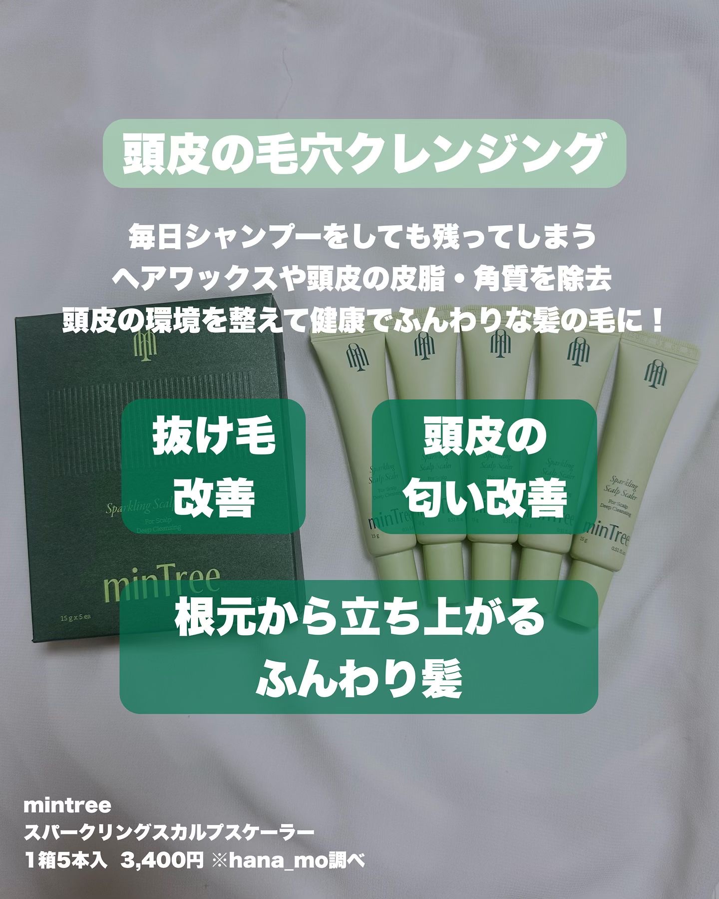 こちらの商品は、「頭皮歯磨き粉」と呼ばれる頭皮角質ディープクレンジングです✨ かゆみ、角質、フケ、脱毛など、あらゆる頭皮の悩みにアプローチしてくれます◎ 炭酸バブルが頭皮の毛穴についた古い角質や老廃物を刺激せずになめらかにスケーリングしてくれます♪ 頭皮にのせるとスーと爽快感があって気持ちいいです◎