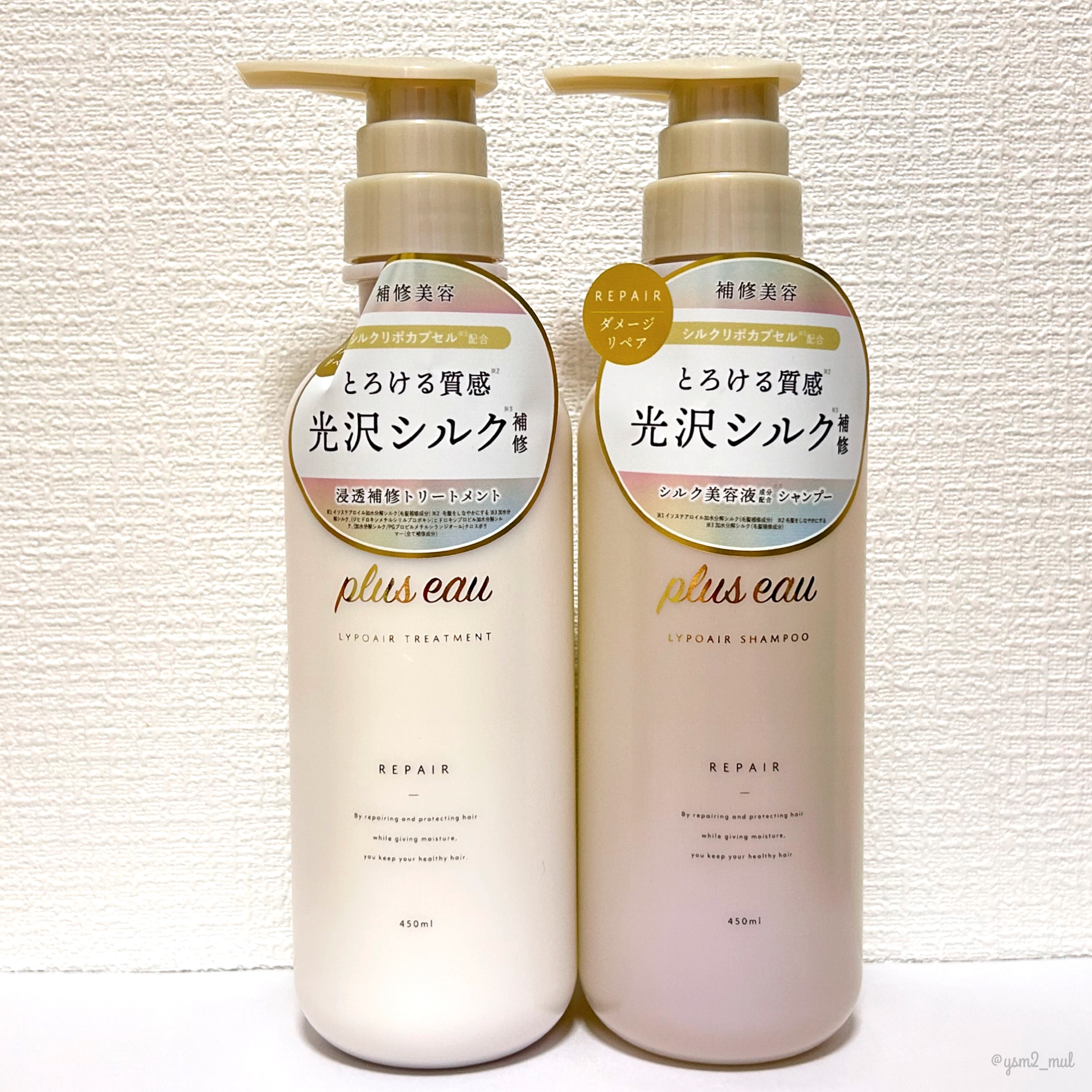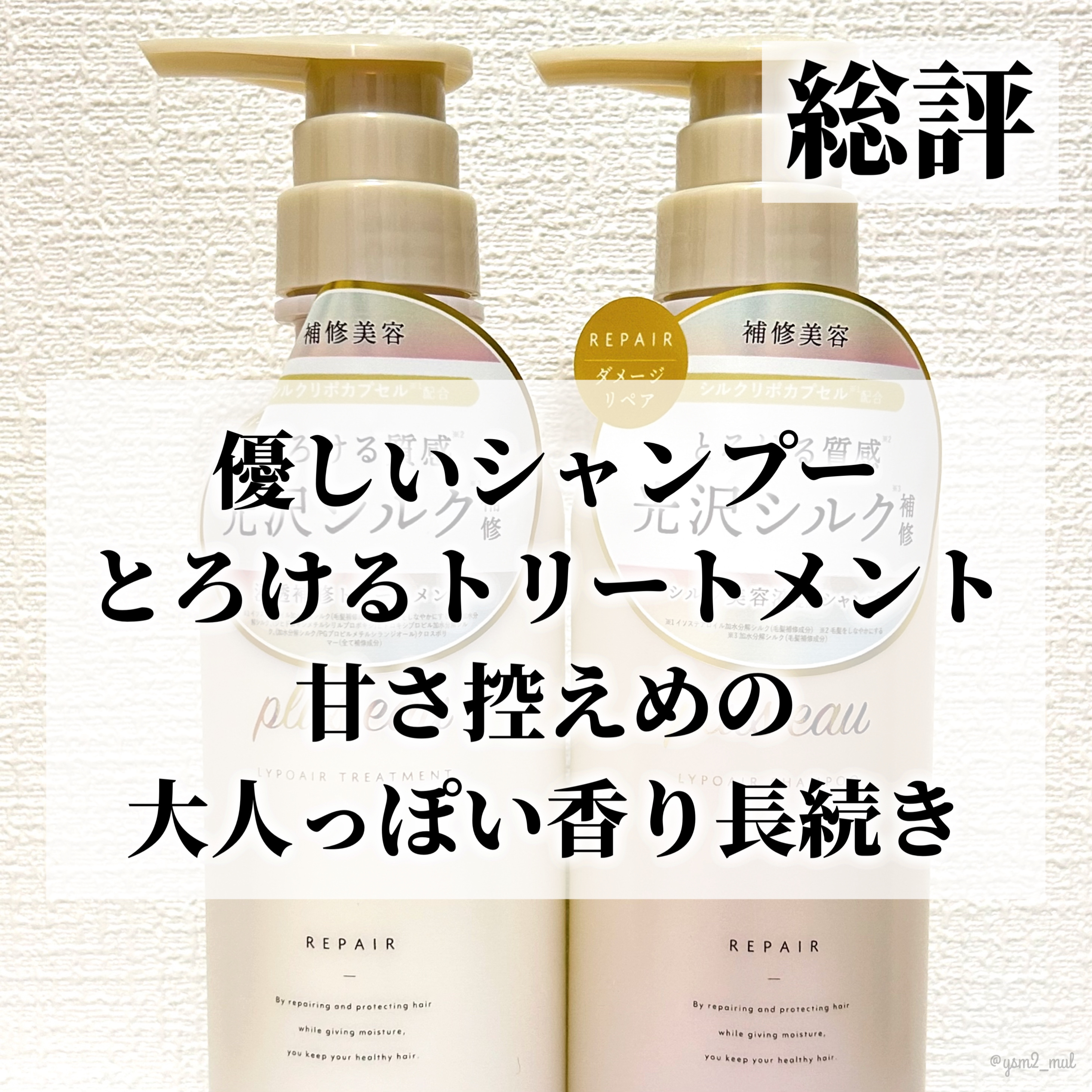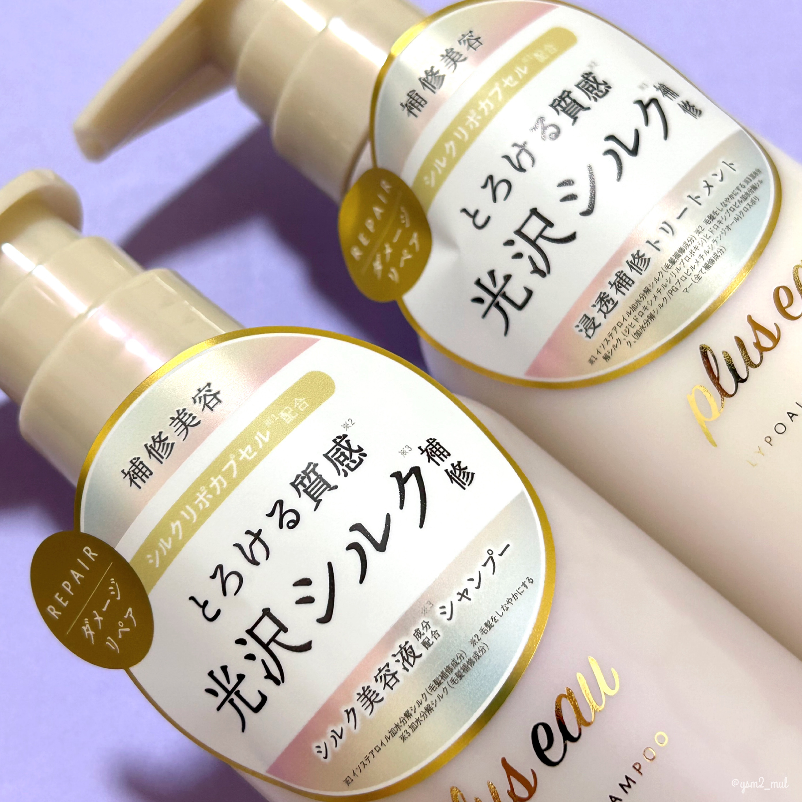 pluseauさまから商品提供をいただきました。pluseau/プリュスオー◻︎リポアシャンプー/リポアトリートメント450mlLIPSベストコスメ多数受賞のプリュスオーから\\ダメージ補修シリーズ新登場//シャンプーはかなりとろみのあるテク...