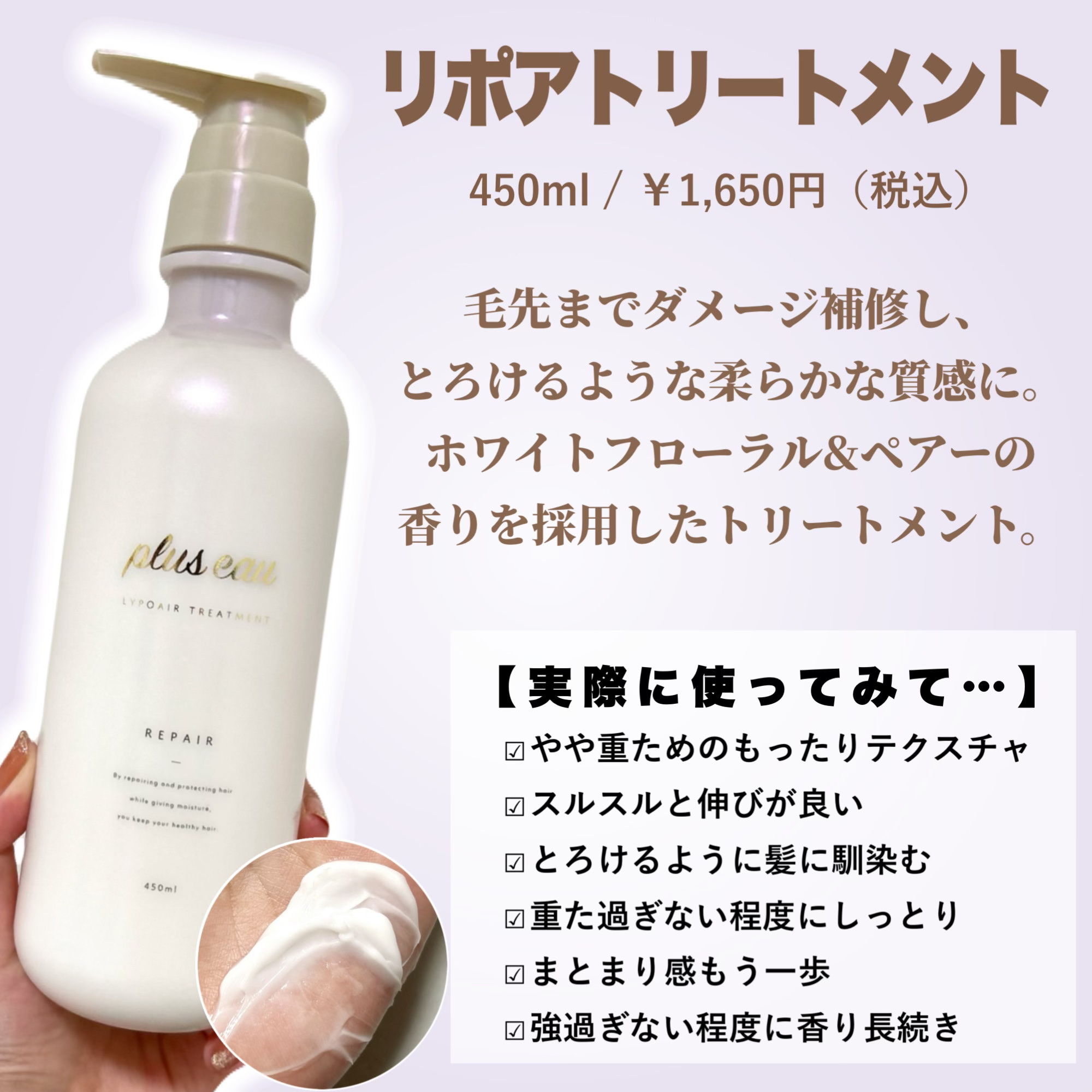 商品詳細情報plus eau リポアシャンプー/リポアトリートメント