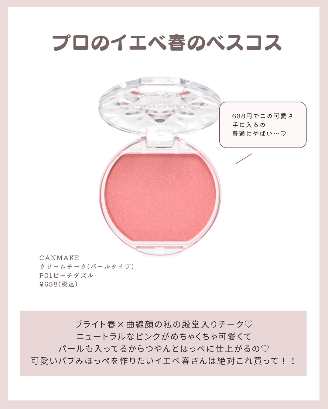 🌸イエベ春におすすめのチーク5選👑イエベ春さんは黄みよりで明るめなカラーを選ぶのがおすすめ🌷韓国コスメはマット質感でふわふわに、日本コスメはラメ入りでツヤのある仕上がりに✨fweeとエテュセは指塗り、その他はブラシ塗りがおすすめ🪄16タイプ別...