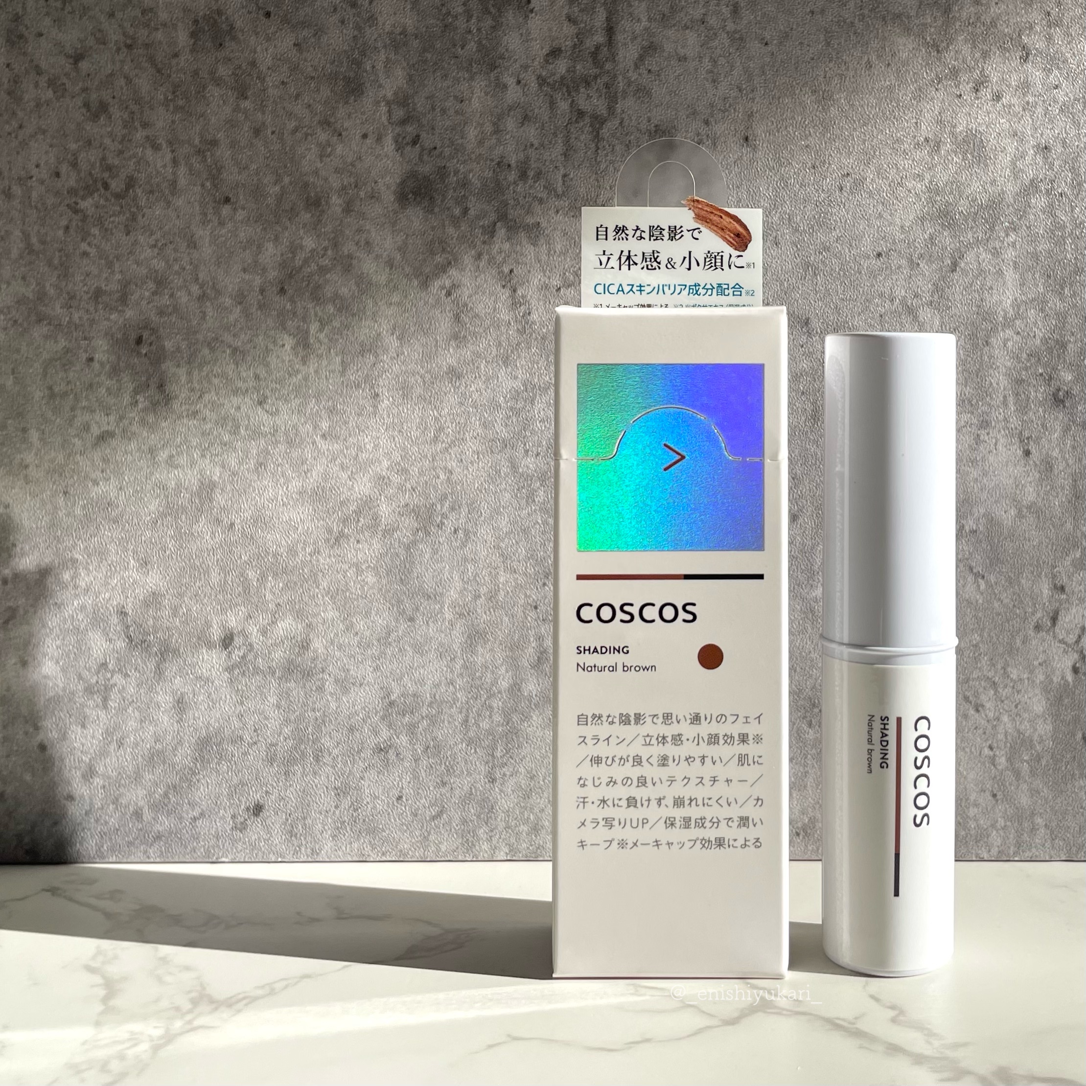 - 自然な陰影で立体感&小顔に(※1) 自然な陰影で自分の思い通りのフェイスラインを演出してくれるシェーディング。 ●立体感&小顔効果(※1) 肌なじみのいいテクスチャーと色味で、自然な陰影を演出 ひと塗りで簡単に小顔が作れて、テクニックいらずで理想のフェイスラインに ●汗・水に負けず、崩れにくい 肌へ密着し、汗・水によって崩れにくく、思い通りのフェイスラインをキープ ●伸びが良く塗りやすいスティックタイプ 繰り出して、そのまま塗れるスティックタイプ 伸びがよく、ひと塗りでほどよく色がつくので、濃すぎることなく自然な陰影をつくれます ●注目の「CICA(※2)スキンバリア成分」配合 CICA(※2)スキンバリア成分を配合し、メイクしながらしっかりお肌を守るスキンケア効果をプラス ※1.メーキャップ効果による 2.ツボクサエキス(保湿成分)