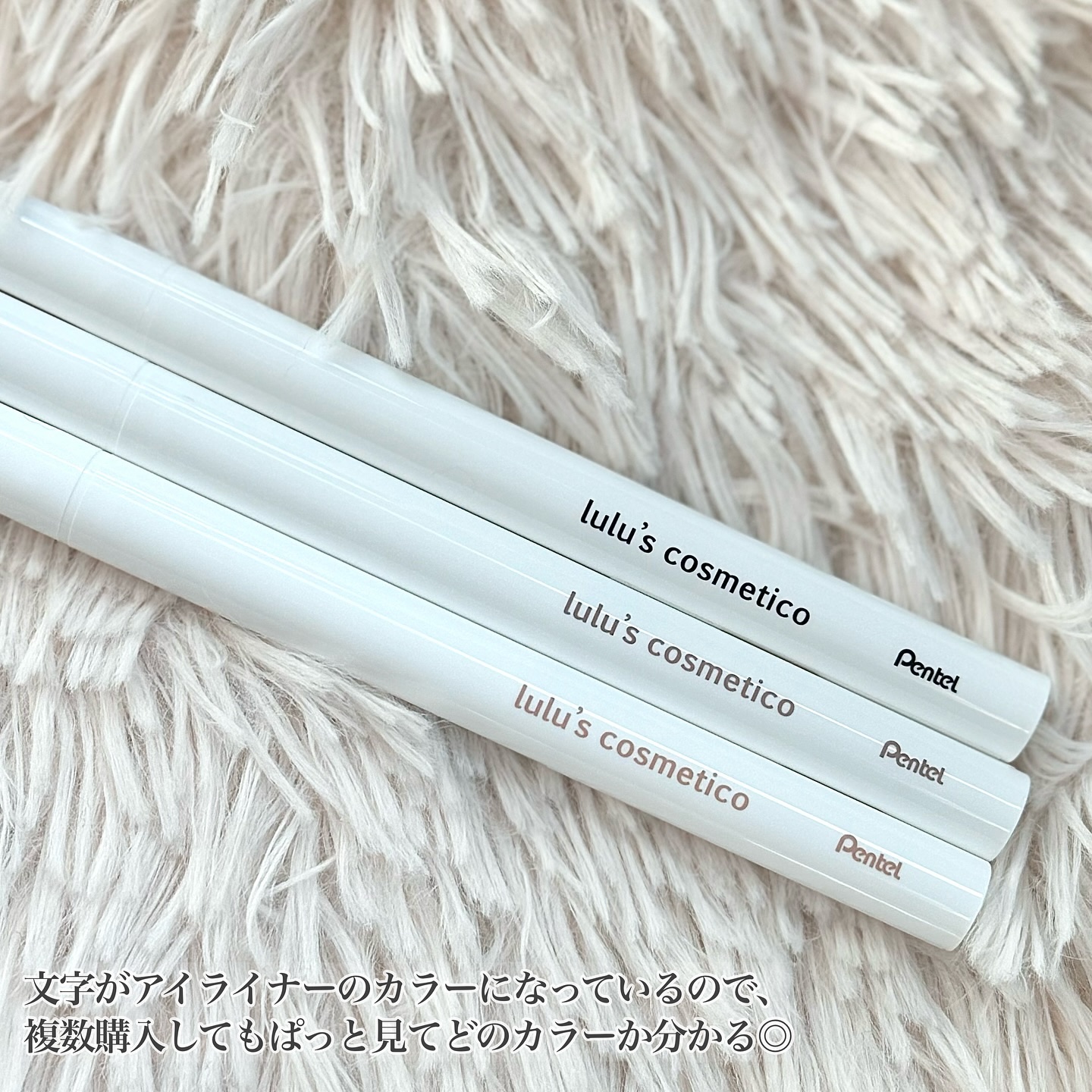 筆記具メーカーのぺんてるの化粧品ブランド「lulu’s cosmetico(ルルズコスメティコ)」 ぺんてる筆の描きやすさ!なめらか穂先のリキッドアイライナー✨ 発色もよくベーシックなカラーから抜け感カラーもあるから気分やシュチュエーションに合わせて使えて目元を鮮やかに演出してくれるよ🌿.∘