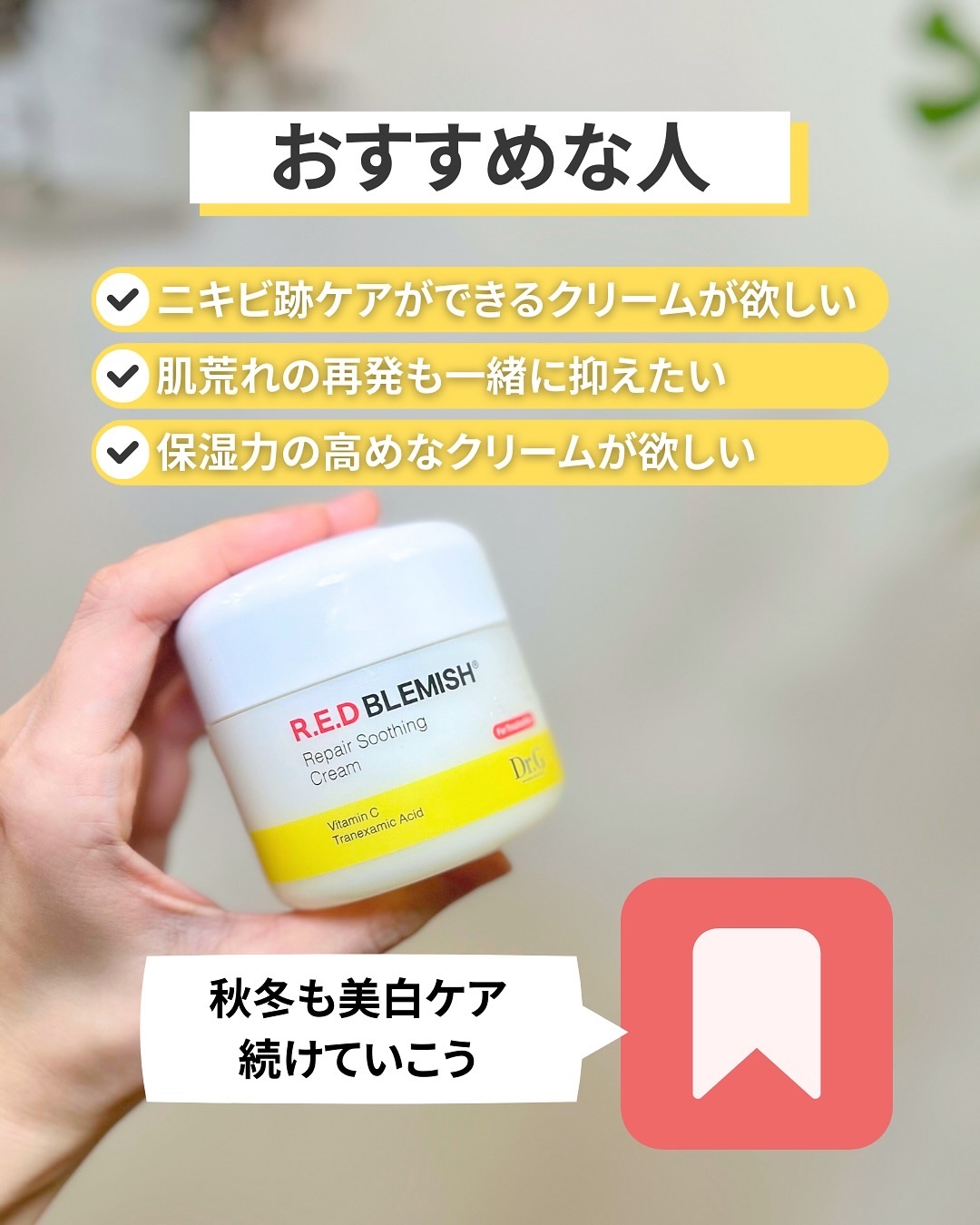 ニキビ跡などの色素沈着によるトラブル跡までケアできる機能性クリームが新発売!! トラネキサム酸以外にもCICA成分とパントテン酸でニキビ予防をしながらビタミンCとナイアシンアミドで美白ケアもできるから予防&跡ケアができるの◎ 肌のシミ、肌トーン、色素沈着改善および美白効果が期待できるなんて嬉しい☺️