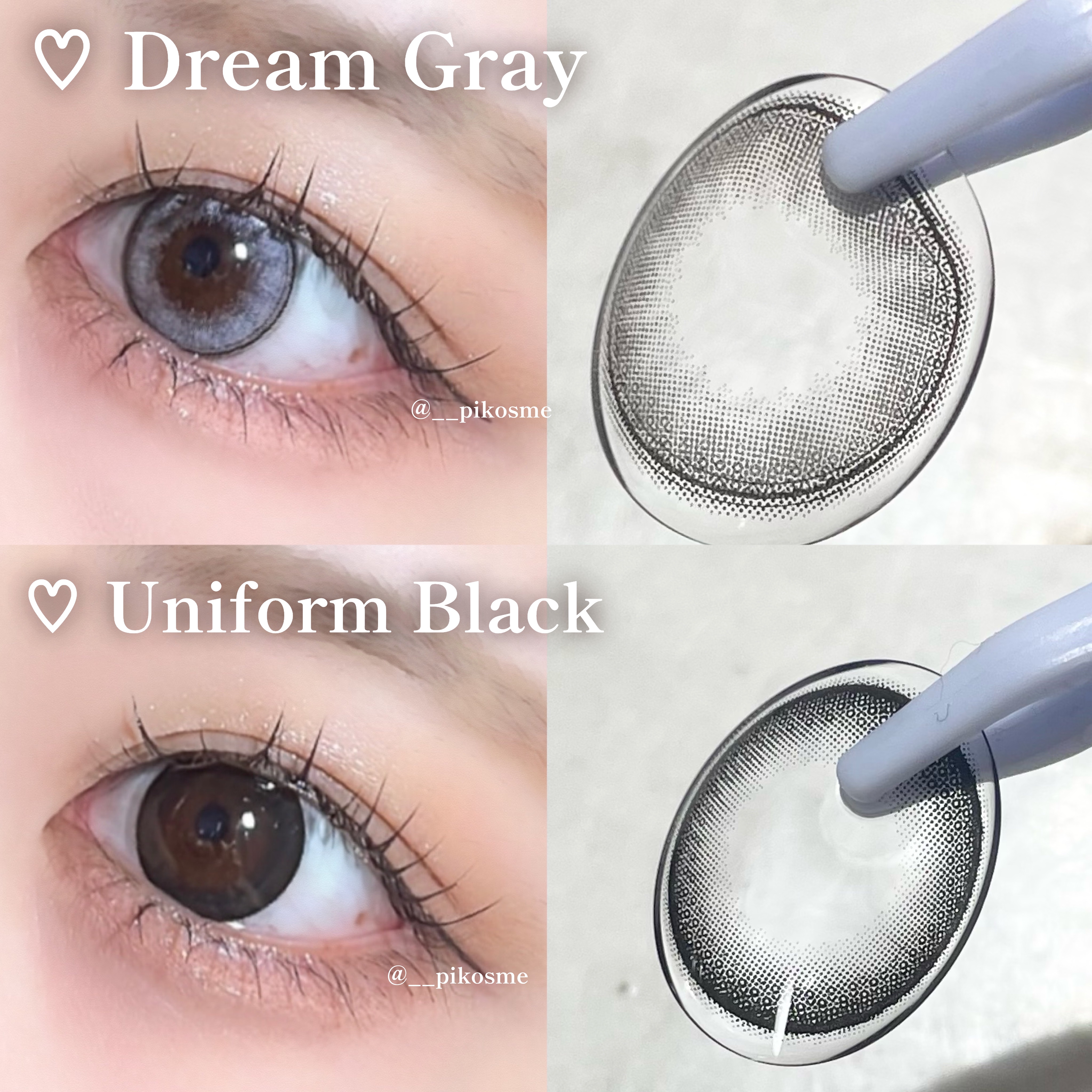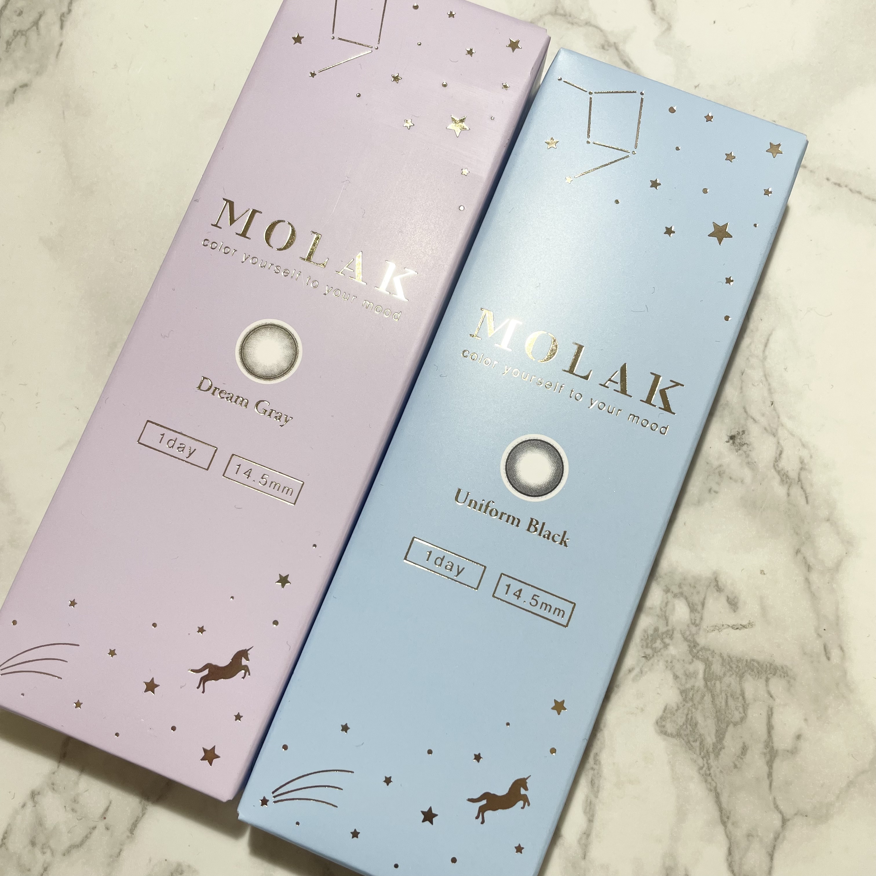 MOLAKの新作カラコンはサイズ感大きめデカ目演出効果高めのレンズ! ドリームグレー→かなり明るめ、白みのあるグレーに発色しました ユニフォームブラック→真っ黒すぎないけど、黒目がちな瞳を演出するカラコン