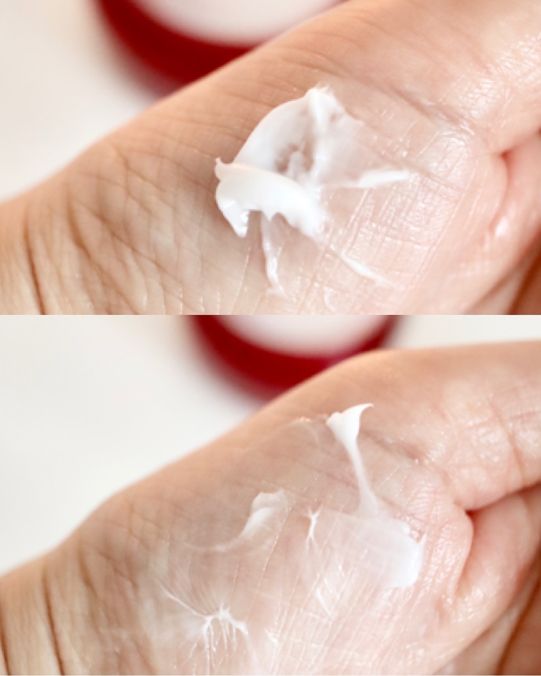 贅沢に美容成分を配合しているクリームは思ったより軽く、みずみずしく、素肌によくのびます。べとつきはしないかな。 プッシュしてエアレスボトルから新鮮なクリームが出てくるから量も調節しやすい🙆♀️ クリームはジェルのようにみずみずしいよ。少し高級化粧品によくあるような独特の香りがします。 ピンク色のエアーレスのボトル プッシュするとクリームが出てきます。
