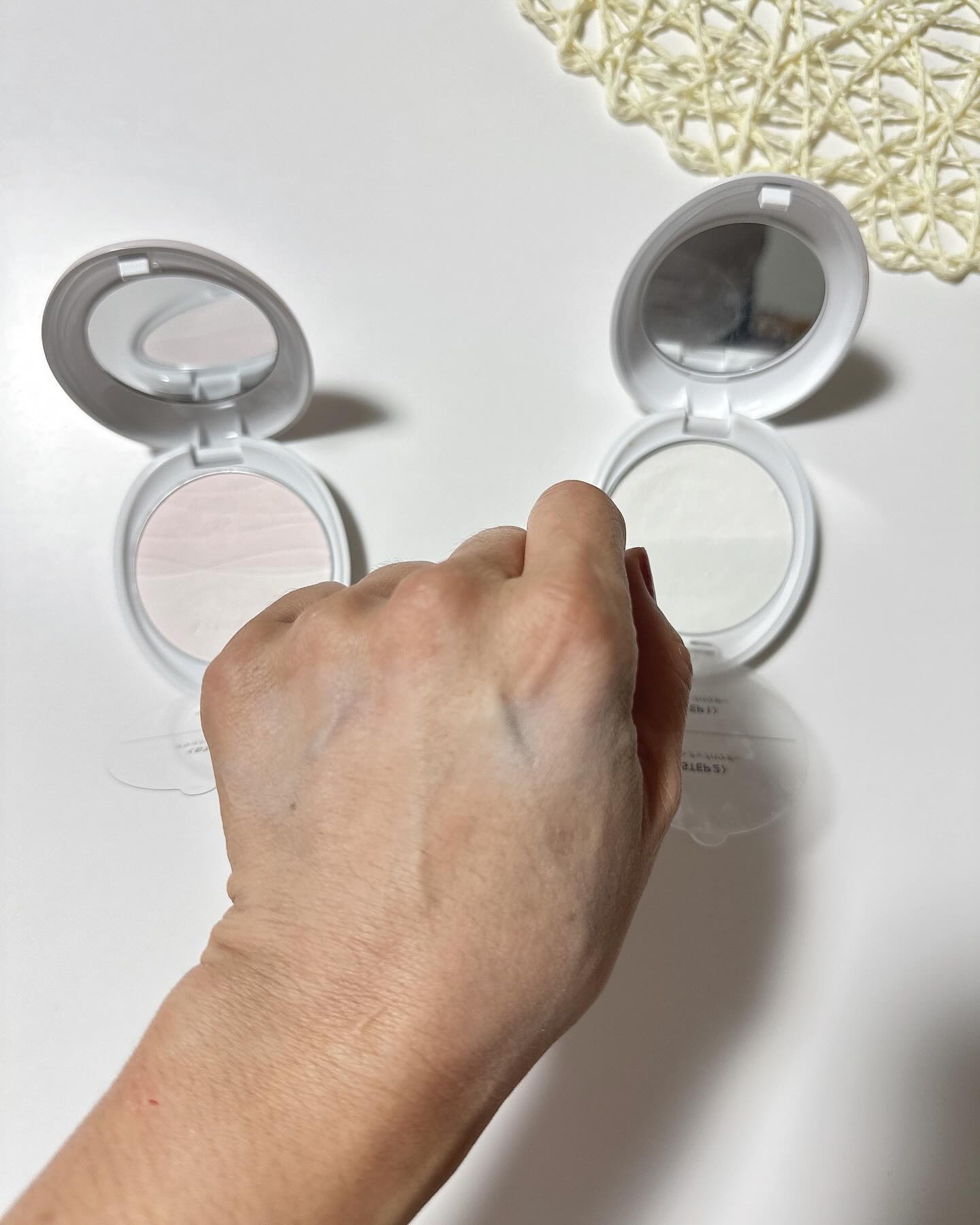 手に取るとサラッとしていて、肌になじませるとみずみずしさを感じながら、しっとりも感じます。 とても心地よいです😍 個人的なイチオシはこちら🩷 大きめのキラキラで赤みを帯びたピンク。 チークやアイシャドウ、唇の山と、どこにつけてもかわいいです😍 ほんのりピンク味も感じるミルキーなホワイトと、繊細な輝き🥛 若干ブルベ向きに感じつつも、王道ハイライト的な貫禄もありますね🤍 淡いピーチのようなピンク🍑 サテンぽくて、あどけなさと大人っぽさを併せ持った感じも魅力的。