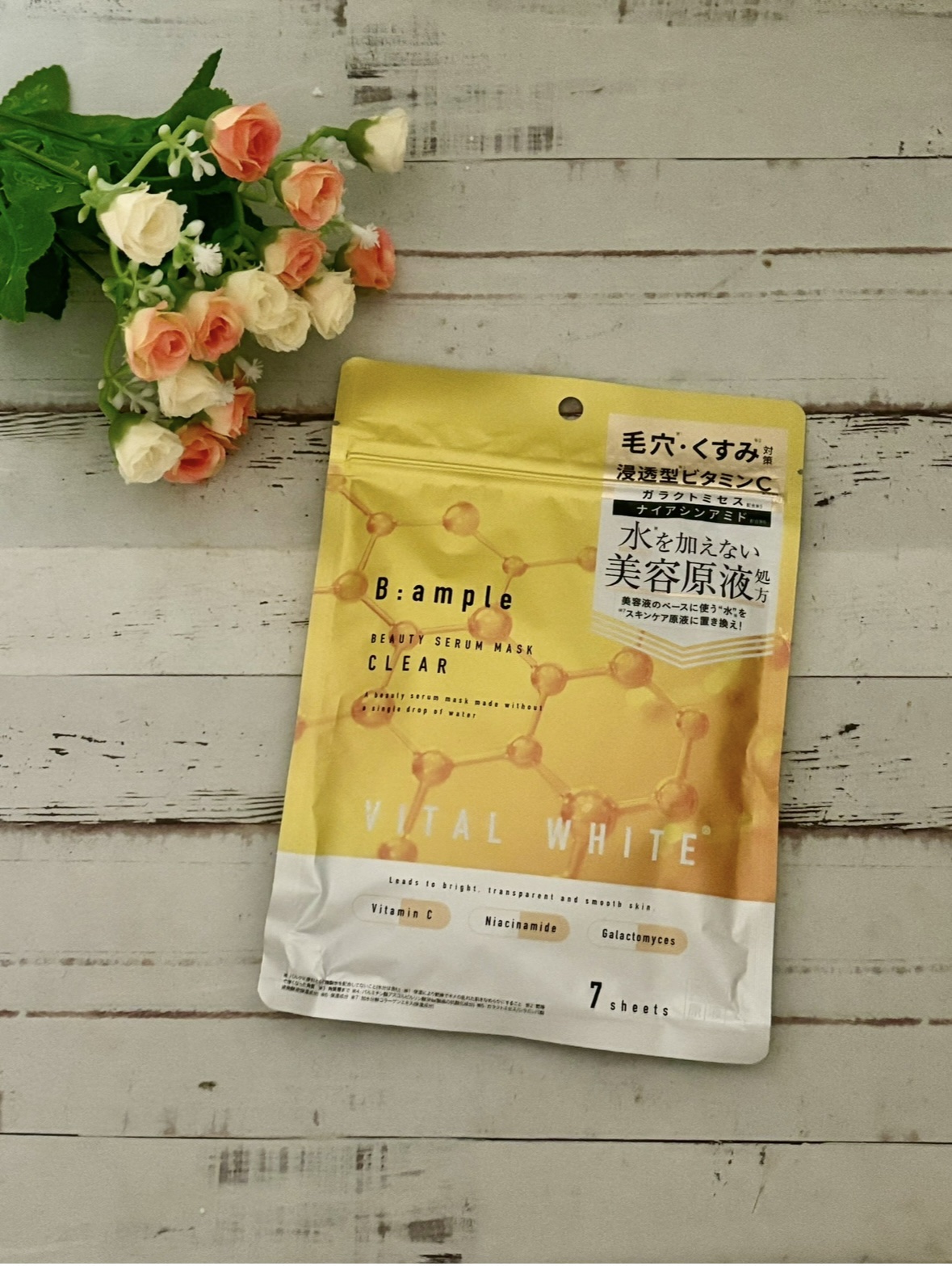 シートマスクの大部分を占めると言われる『水』をコラーゲン原液に置き換え、贅沢を極めた『水を加えない』美容原液マスクとのこと。 浸透型VC、ガラクトミセス、ナイアシンアミドと嬉しい成分が配合されていて、毛穴・くすみにアプローチするクリアタイプ。 パッケージのイエローがビタミンCを連想させてくれるので気分上がります♪