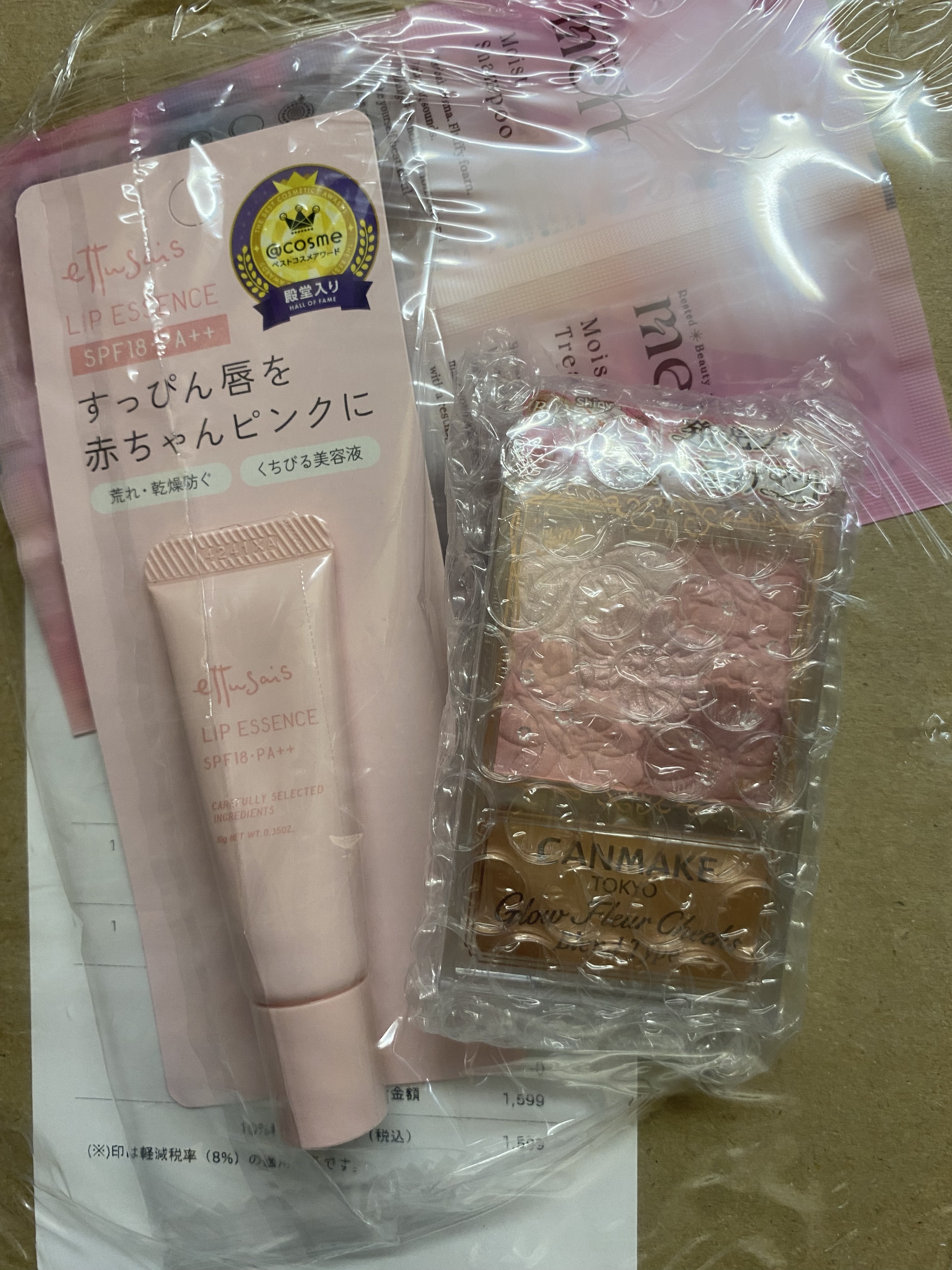 - <10g(リップエッセンス)> ミネラルオイル、水添ポリイソブテン、パルミチン酸デキストリン、メトキシケイヒ酸エチルヘキシル、BG、セタノール、グリセリン、水、ジメチルシリル化シリカ、グルコシルヘスペリジン、アセチルヒアルロン酸Na、水溶性コラーゲン、セスキイソステアリン酸ソルビタン、ケイ酸(Li/Mg/Na)、トコフェロール、シメチコン、オレンジ油、BHT、トリイソステアリン、トリエチルヘキサン酸トリメチロールプロパン、メチコン、テトラデセン、水酸化Al、テトラヒドロテトラメチルシクロテトラシロキサン、リンゴ酸ジイソステアリル、ジイソステアリン酸グリセリル、シリカ、フェノキシエタノール、酸化鉄、酸化チタン、硫酸Ba、赤202