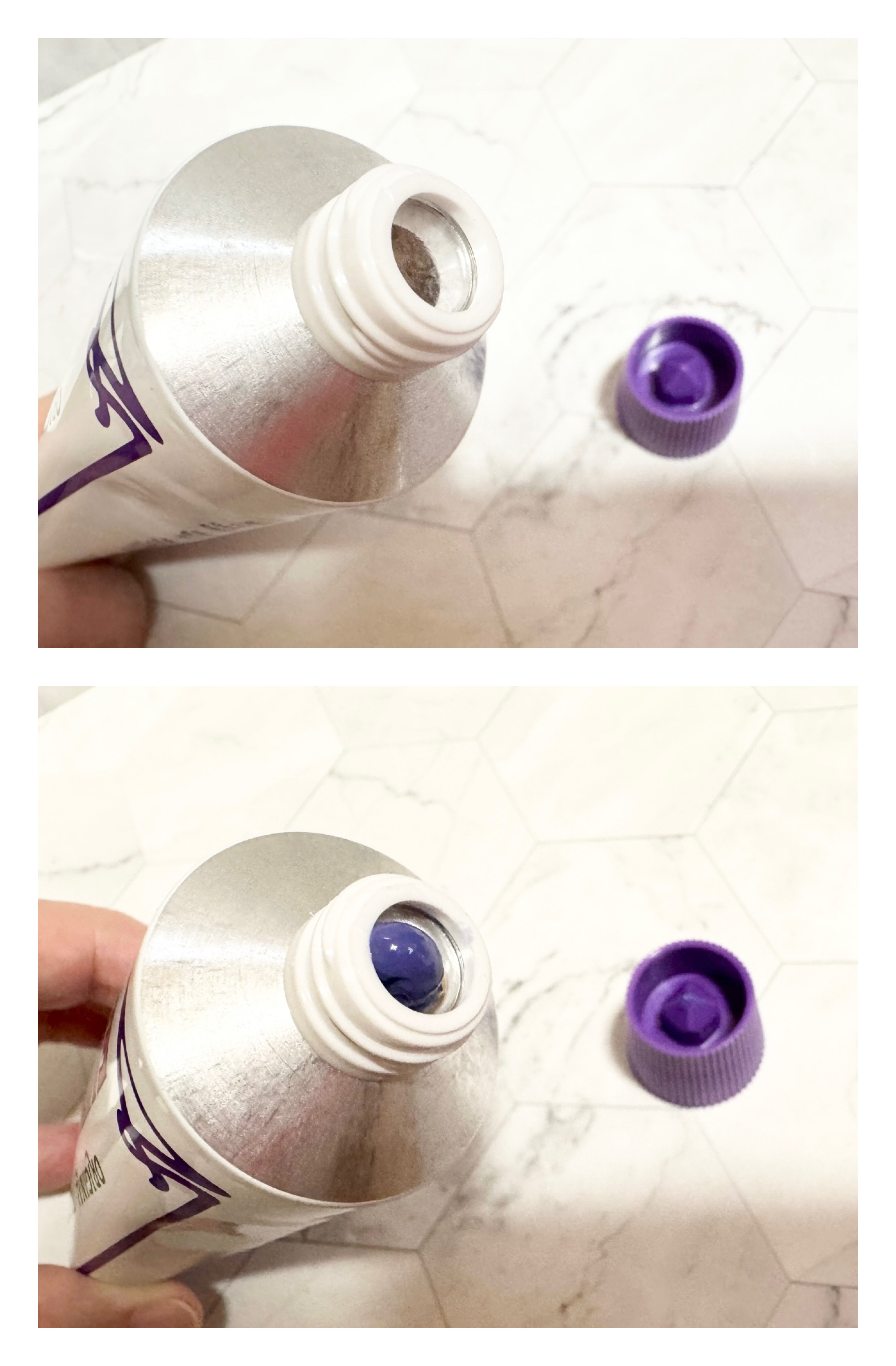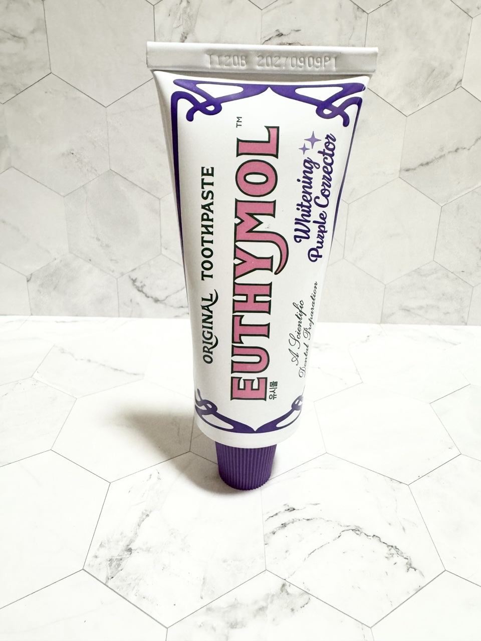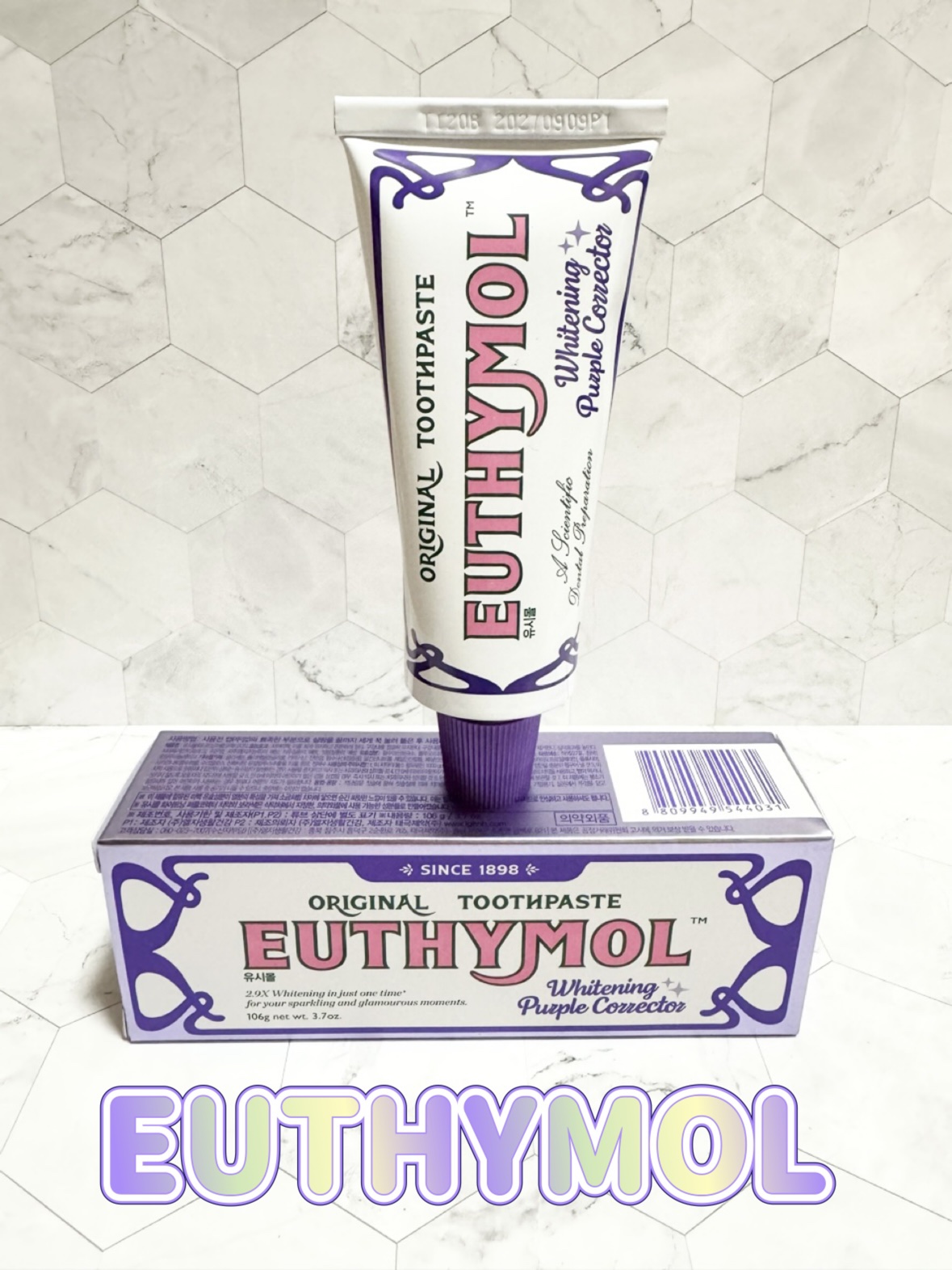\ 韓国初のパープルカラーホワイトニング.ᐟ.ᐟ / 黄色の補色は紫色* 黄色に紫を塗って白くなるトーンアップ効果◎ 独自の保護成分が24時間着色を防止 なんと口臭も12時間抑制.ᐟ.ᐟ 日本にはなかなかない濃い紫色にびっくり.ᐟ.ᐟ 香りは…例えるなら湿布😆