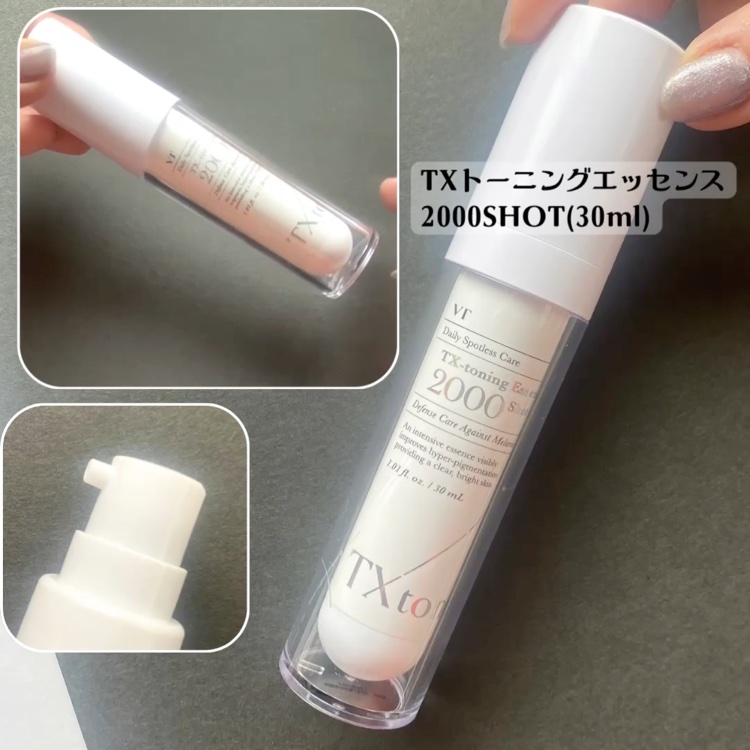 自信のあるすっぴん肌を目指すスキンケア▼どんな方におすすめ?乾燥、くすみ、ニキビ跡が気になる方▼VTトーニングトナーシャバシャバ系のテクスチャで香りもないためどなたでも使いやすそうな使用感!▼VTトーニングエッセンス2000とろみはあるけどベ...