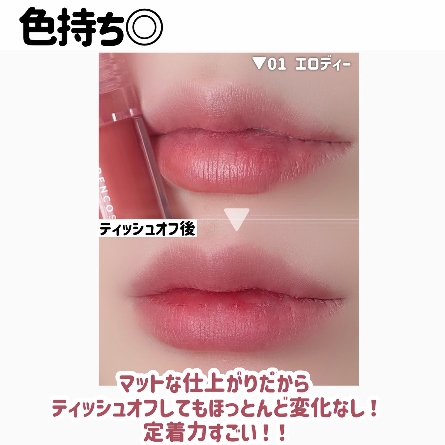 めっっっっっちゃ色綺麗…! 秋冬に使いたいくすみカラーが揃ってます。 M01 #深紅の闇くすんだレッドコーラル。 落ち着いた色味だけど華やかさもあって綺麗〜。色っぽ感出したいならこれ。 M02 #枯れない桜めーーーーちゃかわいい。 ナチュラルなベージュピンク。今までのリプモンの中で1番ナチュラルだと思う! M03 #祝いの紙吹雪モードなモーヴピンクでトレンド感No1カラー。 ブルベさん向きだけどイエベの方も使いやすいカラーです💁♀️♡ M04 #ゴーストムーン0:00AM落ち着いたテラコッタカラー。 秋っぽくてメイクに1番合いそう。オレンジリップ好きさん間違いなし。 M05 #泥霧スモーキーなブラウンオレンジが大人っぽい雰囲気。 抜け感を出したい時に使えるカラー◎ 軽やかでふんわりとした質感。ふわふわなチップでぼかしやすくグラデーションも綺麗に仕上がりました🥰 落ちなさも安定過ぎてもはや説明不要、、、! 今回も欠品決定の優勝リップでした。