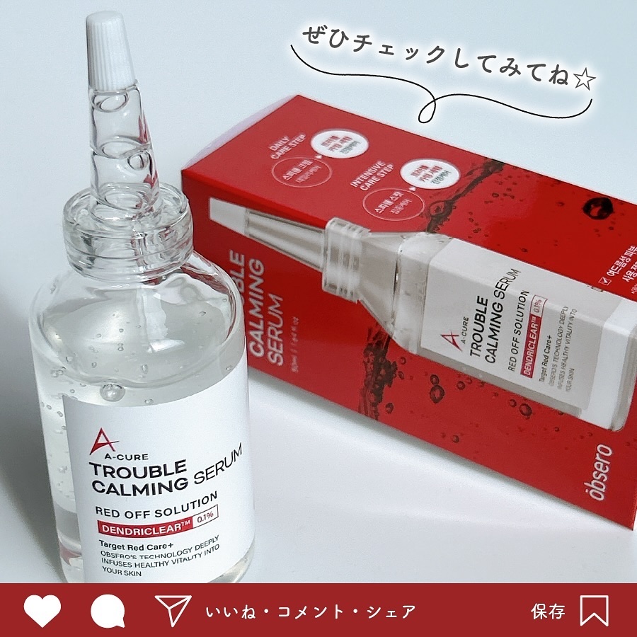obsero✨エーキュアトラブルカーミングセラム(50ml)トラブルケアから鎮静ケアまで、お肌の悩み解決セラム‼️ニキビや赤み・乾燥など、春は肌トラブルがいっぱい出てきやすい季節です!こちらの美容液は、特許成分TECA.Cというツボクサエキス...