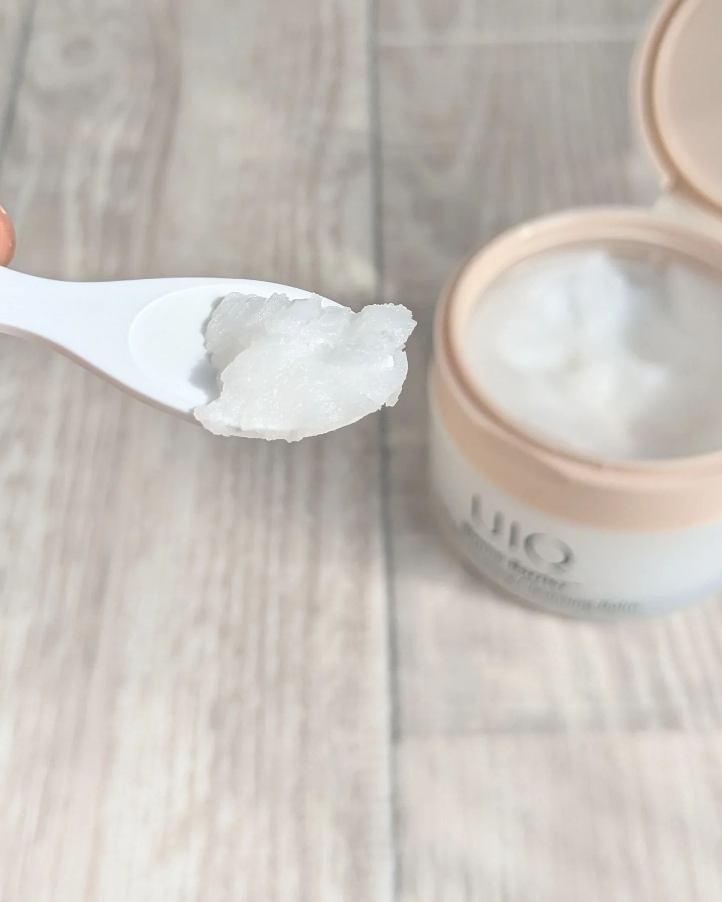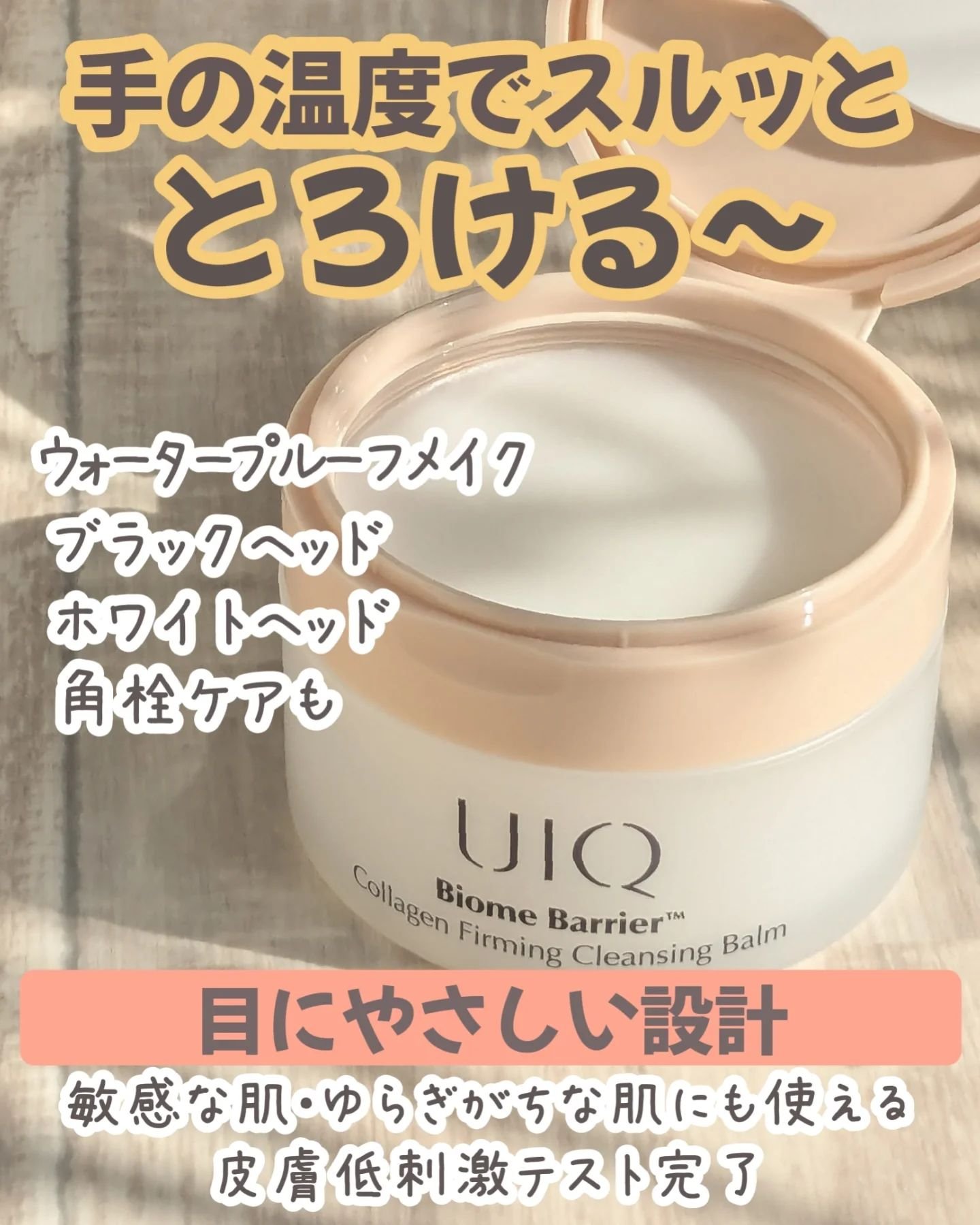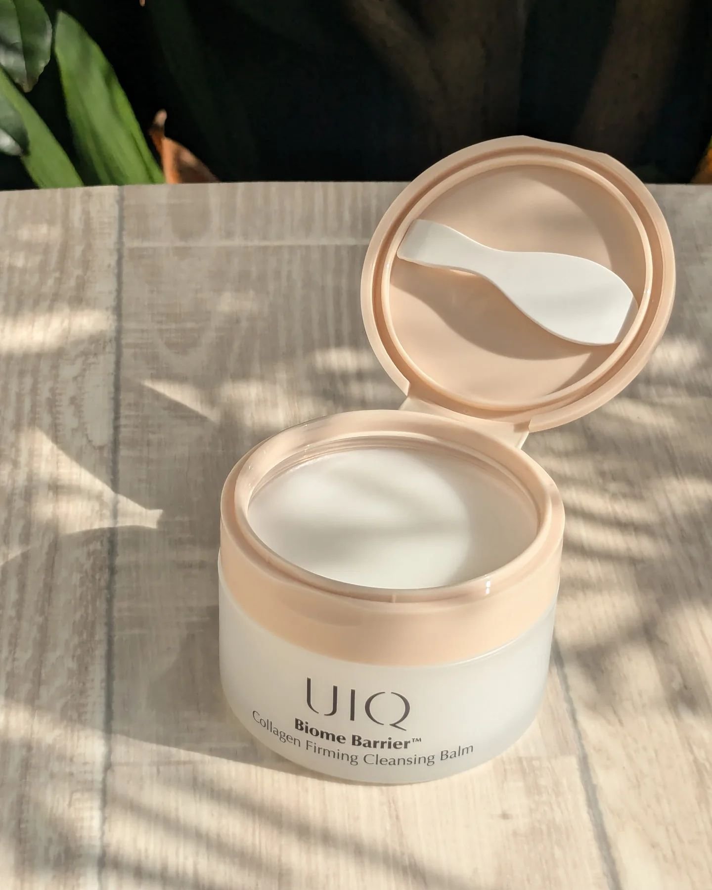 手の温度でスルッととろける UIQ🤍バイオームバリアコラーゲンファーミングクレンジングバーム 柔らかくてなめらかやからお肌に摩擦をほとんど与えずにメイクを落とせるよ! ウォータープルーフメイクも落ちる👍🏻 ブラックヘッド/ホワイトヘッド/角栓ケアもできるから毛穴が気になる人にもおすすめ!