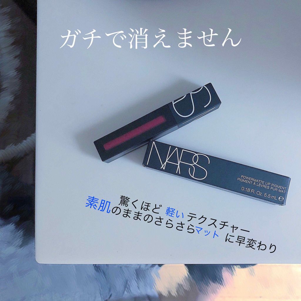 - NARS至上、一番パワフルなマットに仕上がるリップ、パワーマットリップピグメント。液体化されたピグメントを採用し、まるで無重力な使用感と、どこまでも鮮やかなマットカラー、この上ないしなやかさで長時間キープが可能に。唇をロックするマットカラーがリップにパワーを与えます。