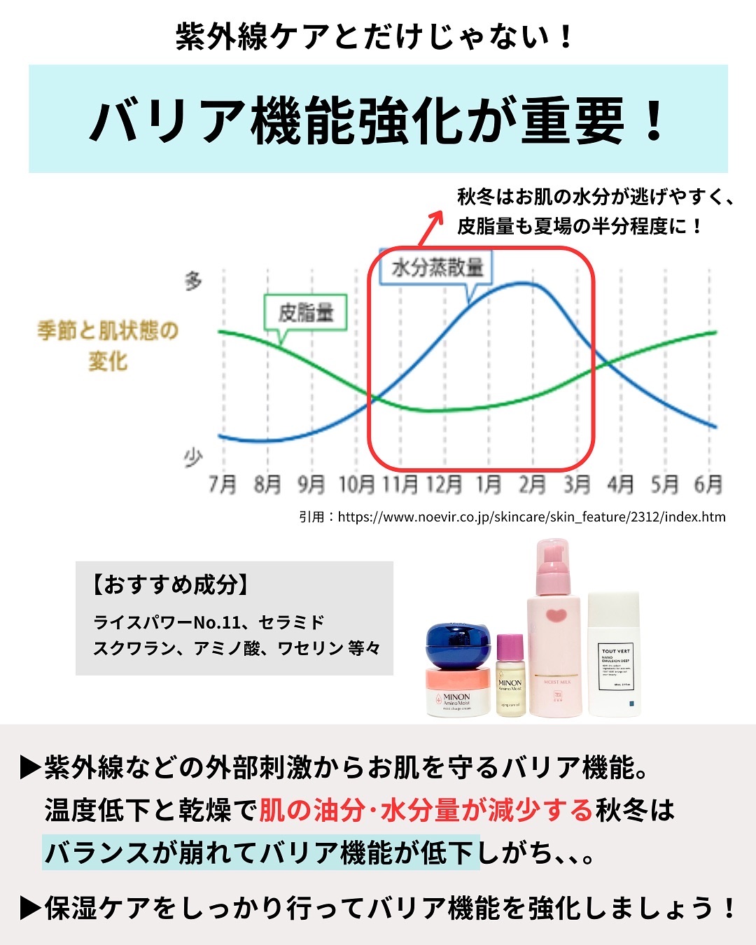 秋冬は老け肌に注意🍂❄️こんばんは、なぎです🫧秋冬は夏より紫外線が弱まるけれど、真皮まで届いてシワやたるみの原因になるUVAは実は“夏の約半分”も降り注いでいます☀️紫外線対策をやめてしまうと、知らないうちにエイジングサインが進行することも…...