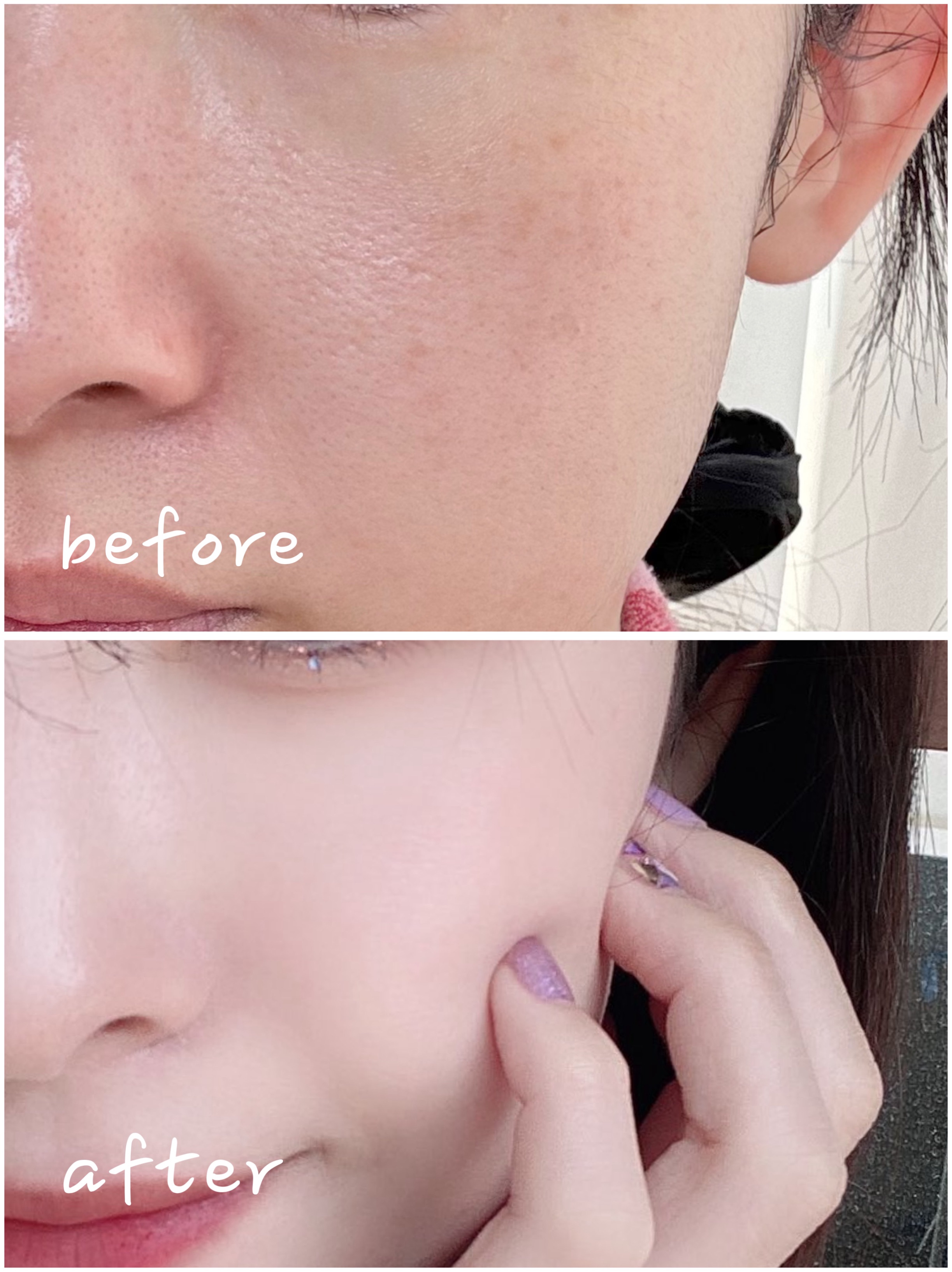 かためだけど、スラーっと伸びて 塗っている感じがありません! 香りも優しいせっけんのような香りです🫧 ビフォーアフターのように、 塗っても白くなったりもしないので 化粧の上から塗り直すのにも最適!