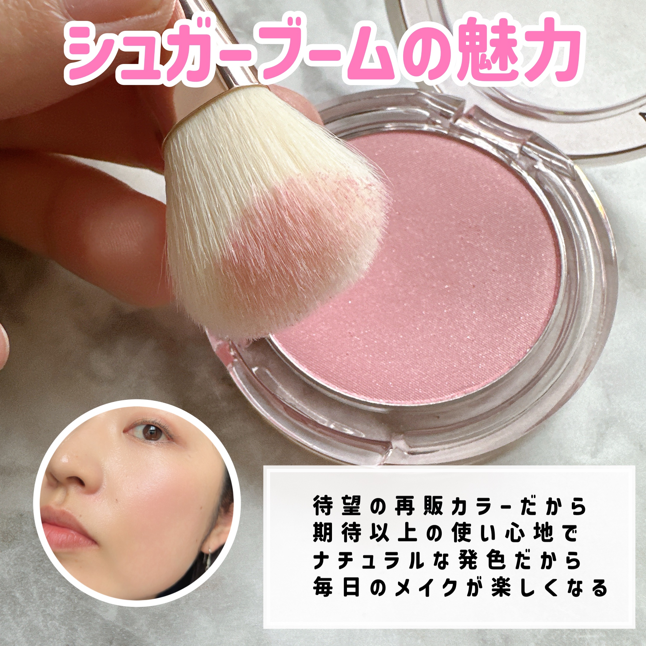 毛穴カバーで完成させるぼかし効果チーク 1等級パウダー(フィニッシュパウダーの技術)毛穴や肌の凹凸をカバーし、なめらかなマットな発色 頬に甘さをプラスする元気なフルーティコーラルピンクチーク ラメ入りで更に可愛いです💗可愛いのでシュガーブームも買っちゃいました🥰💕