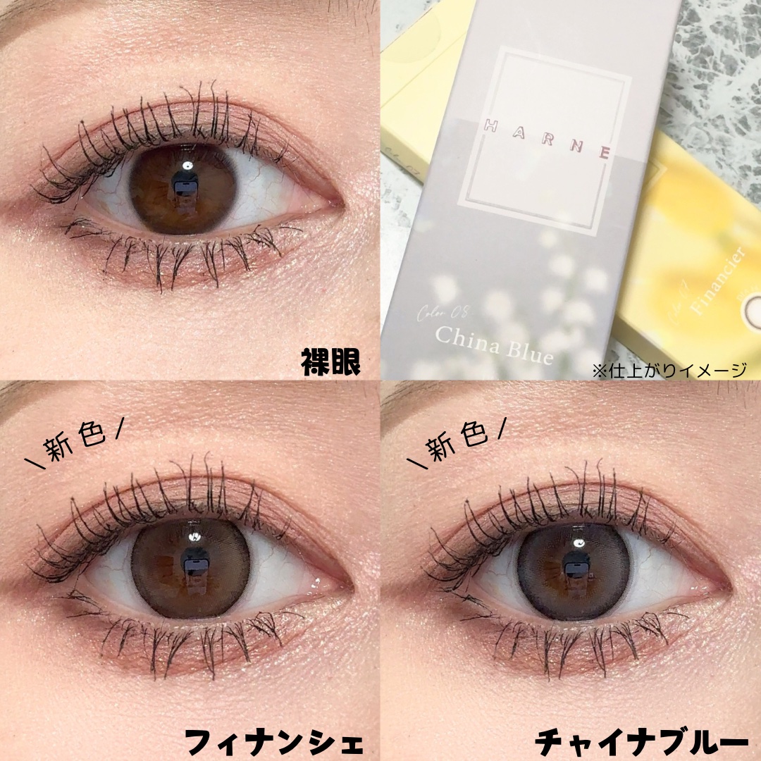 てんちむちゃんプロデュース♪爆ビジュ新色登場! 今回出た新色はどちらとも細フチでさりげなく盛れるデザイン👀✨ フィナンシェ くっきりブラウン×ミルキーベージュ 色素薄い系のミルキーベージュカラーで可愛らしい目元に♡ チャイナブルー ダークグレージュ×ニュアンスブルー ワンホン系にも韓国系にもなれる青みグレーでトレンドっぽアイに✨