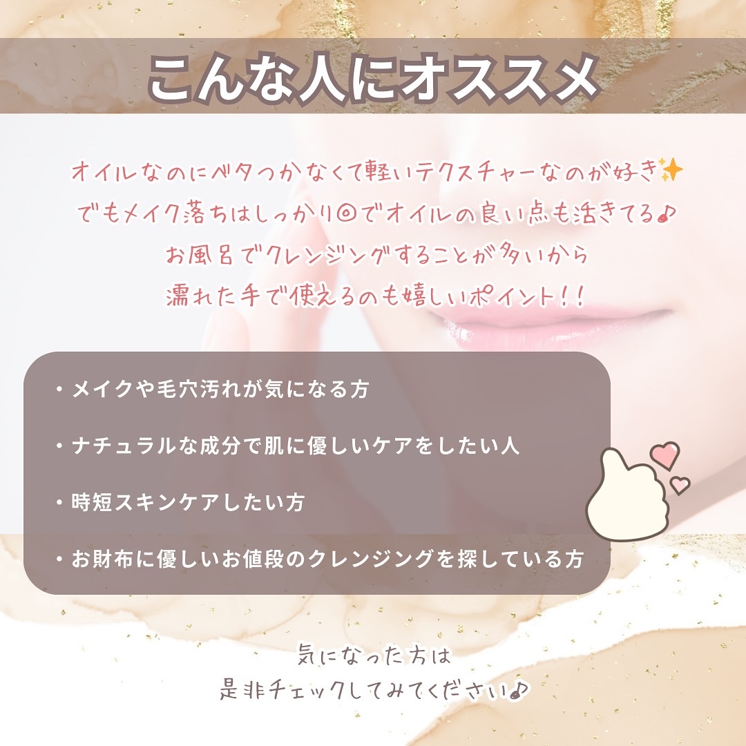 | クレンジングオイルランキング第123位 | 重すぎず軽すぎないオイル感で、肌にスッと広がるなめらかさが最高✨ ウォータープルーフのメイクもスルッと落ちるのに、つっぱらずもっちり仕上がるところが好き | 詳細を見る | |