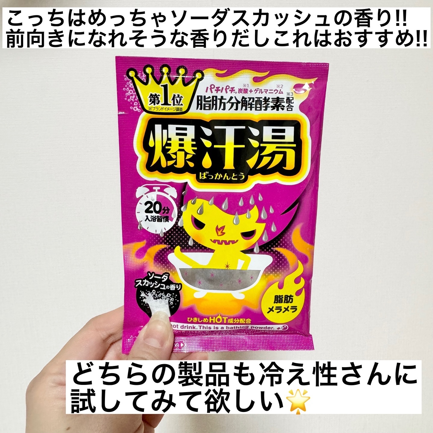☑︎爆汗湯7種類ドバッと汗をかきたい時にこの入浴剤使ってみて🙌!SNSでも話題でドラッグストアなんかでもよく見かけるこの商品🌱お湯に入れるとパチパチ炭酸(サウンドシュガー)から炭酸ガスが発生🙌パチパチ音が気持ちいいくらい大きくて楽しい💓✔︎重...
