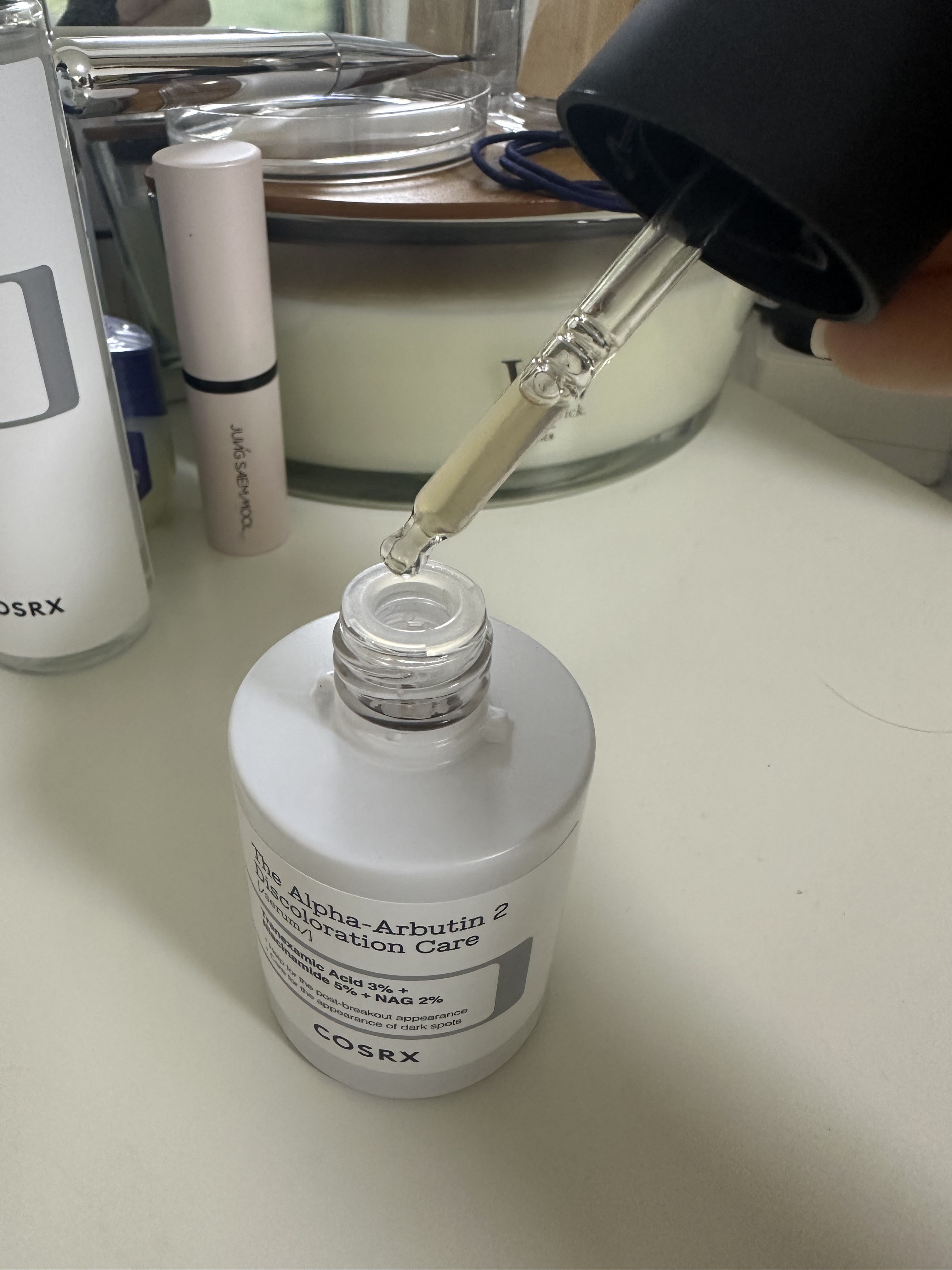 ビタミンC25%にグルタチオン1,000ppm、ナイアシンアミドまで加わった美白機能性化粧品❣️ 内容液の色味はレモン色、香りは高濃度ビタミン配合らしく最初はビタミン特有の薬っぽい香りがします! これだけの成分配合、更には開発・製造・販売まで手がける大手化粧品メーカーであるアモーレパシフィックのデパコスライン『IOPE』の商品ということで、