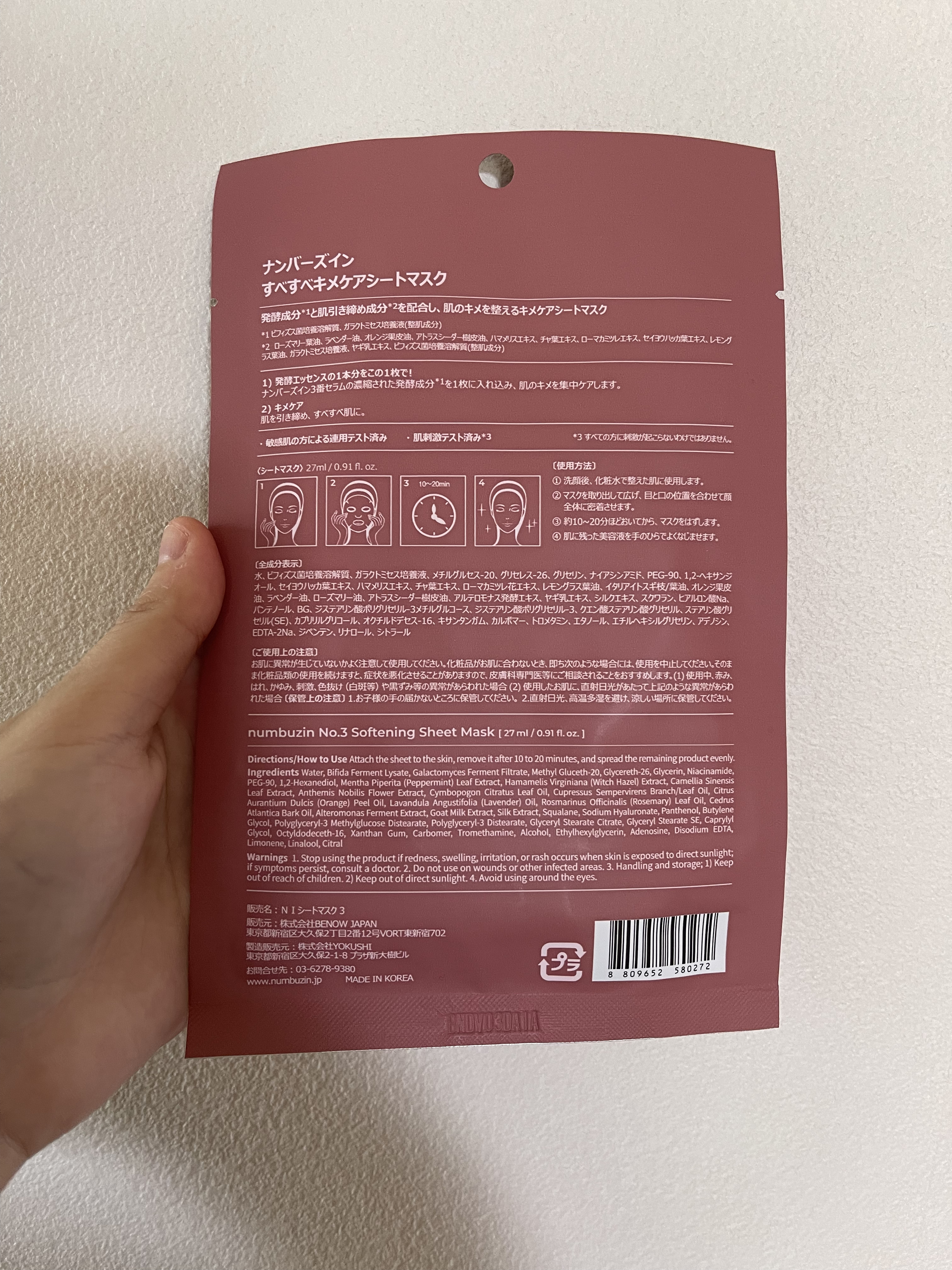 商品詳細情報numbuzin 3番 すべすべキメケアシートマスク