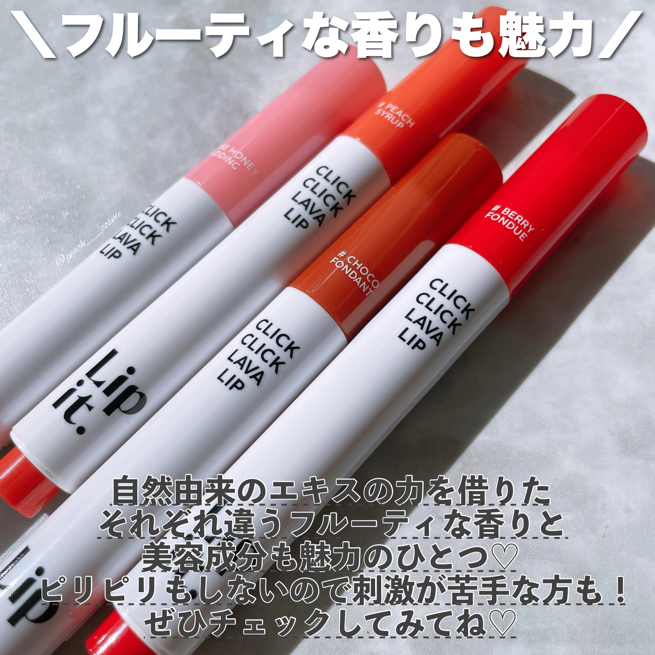 溶岩(ラバ)のようにとろける質感でガラスコーティングしたかのようなツヤぷる唇を演出する美容液リップ「Lipit. クリッククリック ラバリップ🌋❤️🔥 ぷるっぷるになるしもちろん、色を出すために濃く塗ってもちゅるちゅる💋 ルージュの血色感とスリーピングマスクのような保湿ケアを両立した欲張りリップでずる可愛い🥹💗