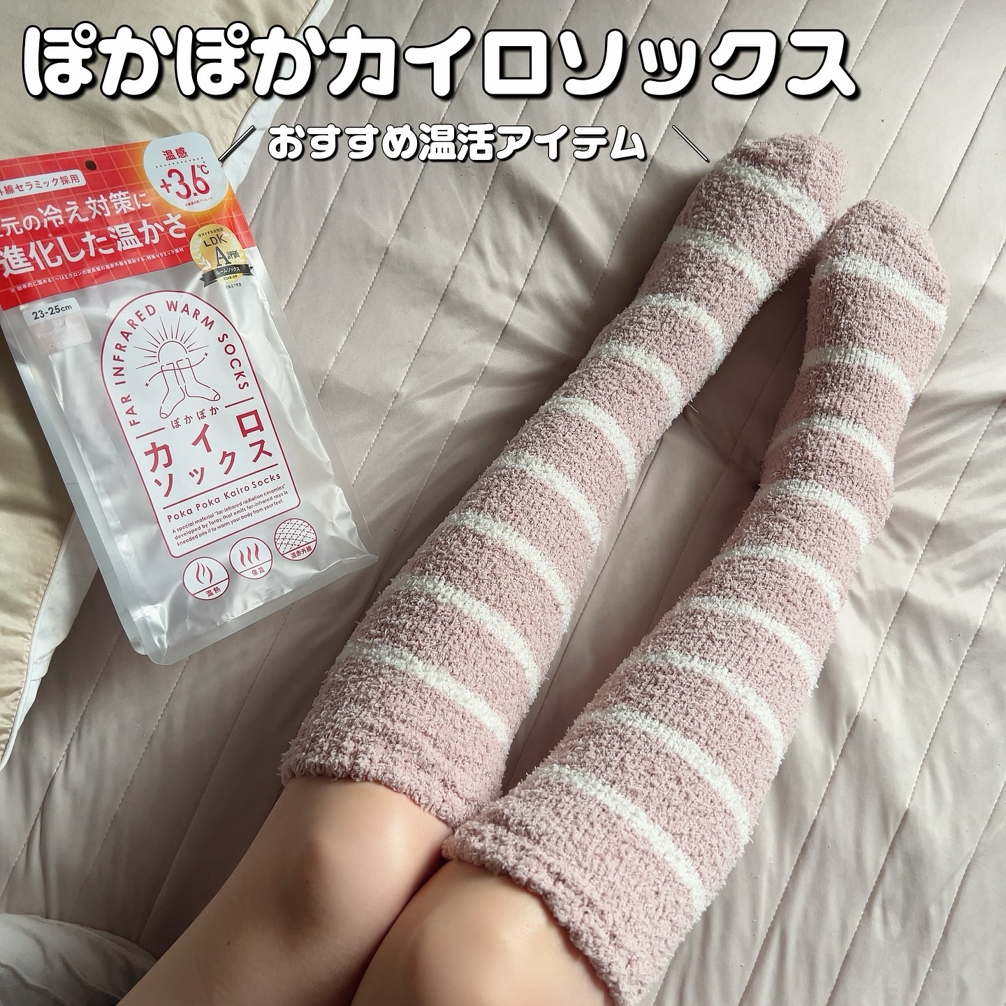 コスメ評価誌LDKでA評価!!あったか靴下「ぽかぽかカイロソックス」が今年も登場✨ 赤外線放射セラミックを練り込んだ繊維を使用していて履くだけで足元の温感+3.6°C ふくらはぎまでカバーできる長さで膝下までぽかぽか足元からじんわりと温めてくれます☺️