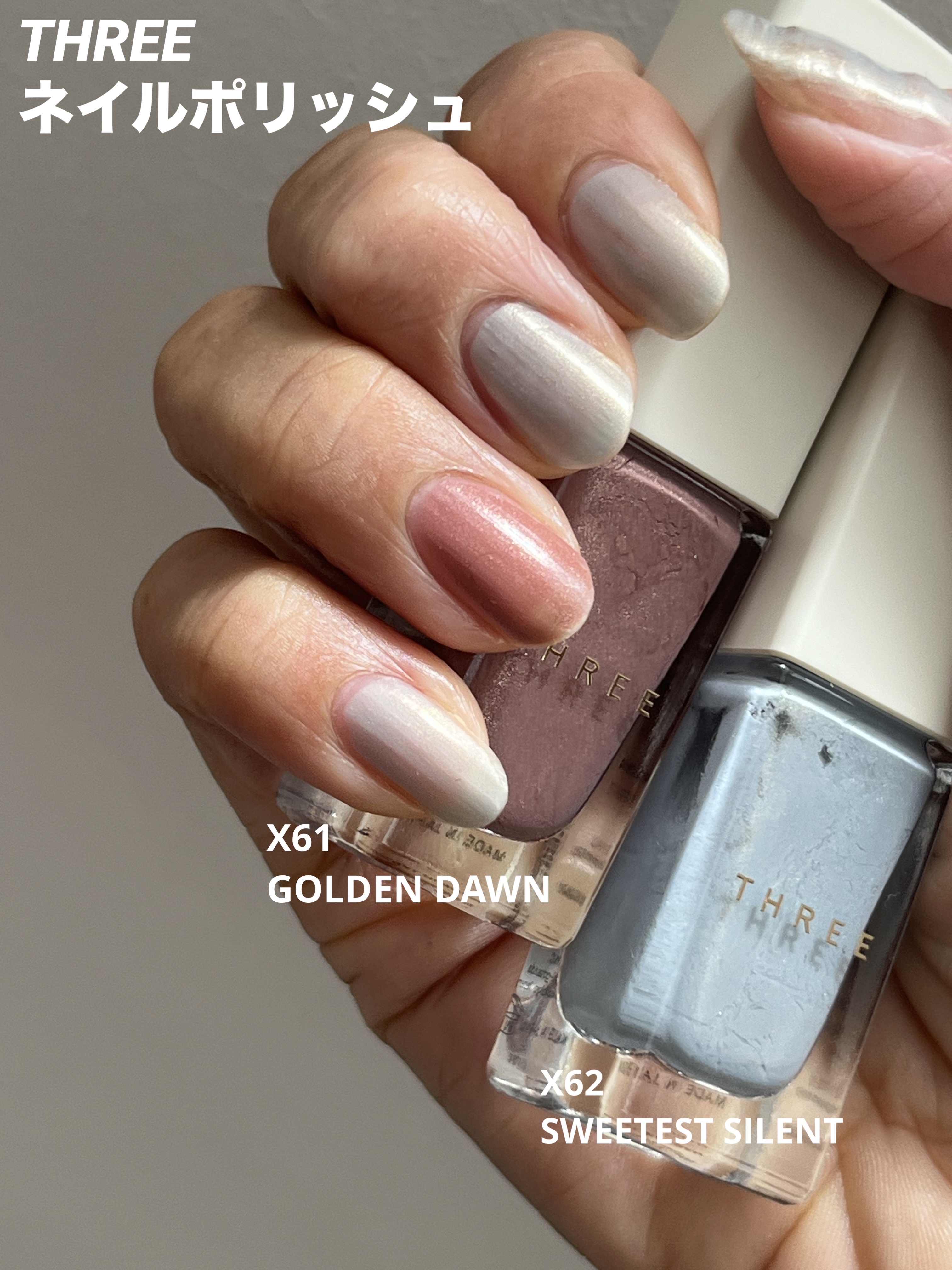- 「ふとした仕草にムードを添える、センシティブな指先へ。」 インデペンデントな発色でありながら、手肌にはもちろん、手を添えた表情にも美しくなじみ、ふとした仕草にムードを添わせるネイルポリッシュ。 儚さを漂わせる一度塗りから、色の個性が深まる重ね塗りまで、さまざまな印象をまとうことができます。 塗りやすさ、乾きやすさ、成分の厳選にまでこだわりのある、THREE独自のオリジナル処方。