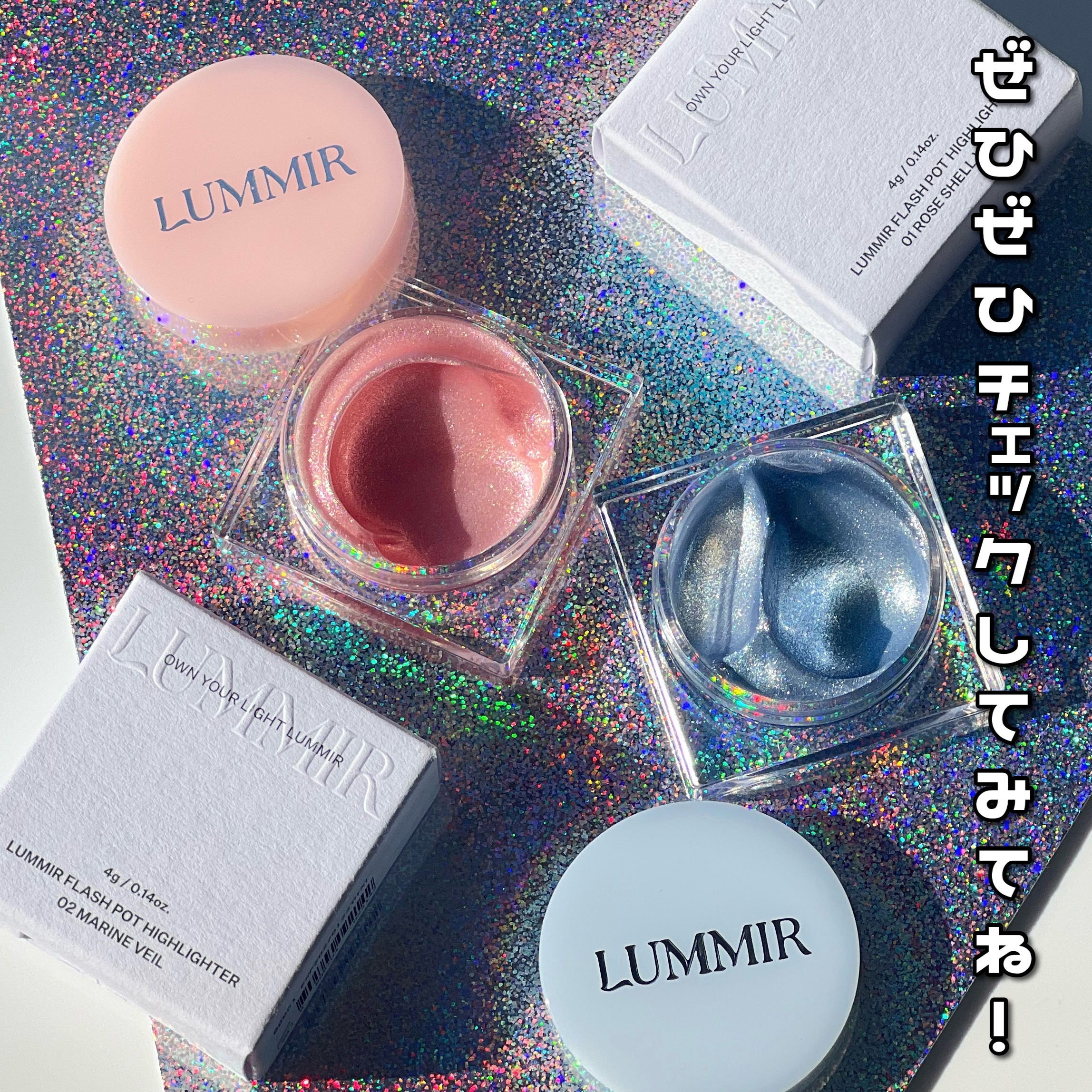 透明感*のある上品な濡れ感仕上がりが可愛いLUMMIRのフラッシュポットハイライト✨ 蓋を開けた瞬間からうっとりするくらいの可愛さ🙆♀️ ギラつき感のないきめ細かい光り方のラメでずっと見てられるくらいきれい🥹✨ オイルベースなので少量でも伸びてコスパも◎ つける量でキラキラ感の調節ができるから、どんなシーンでも使いやすい🫰