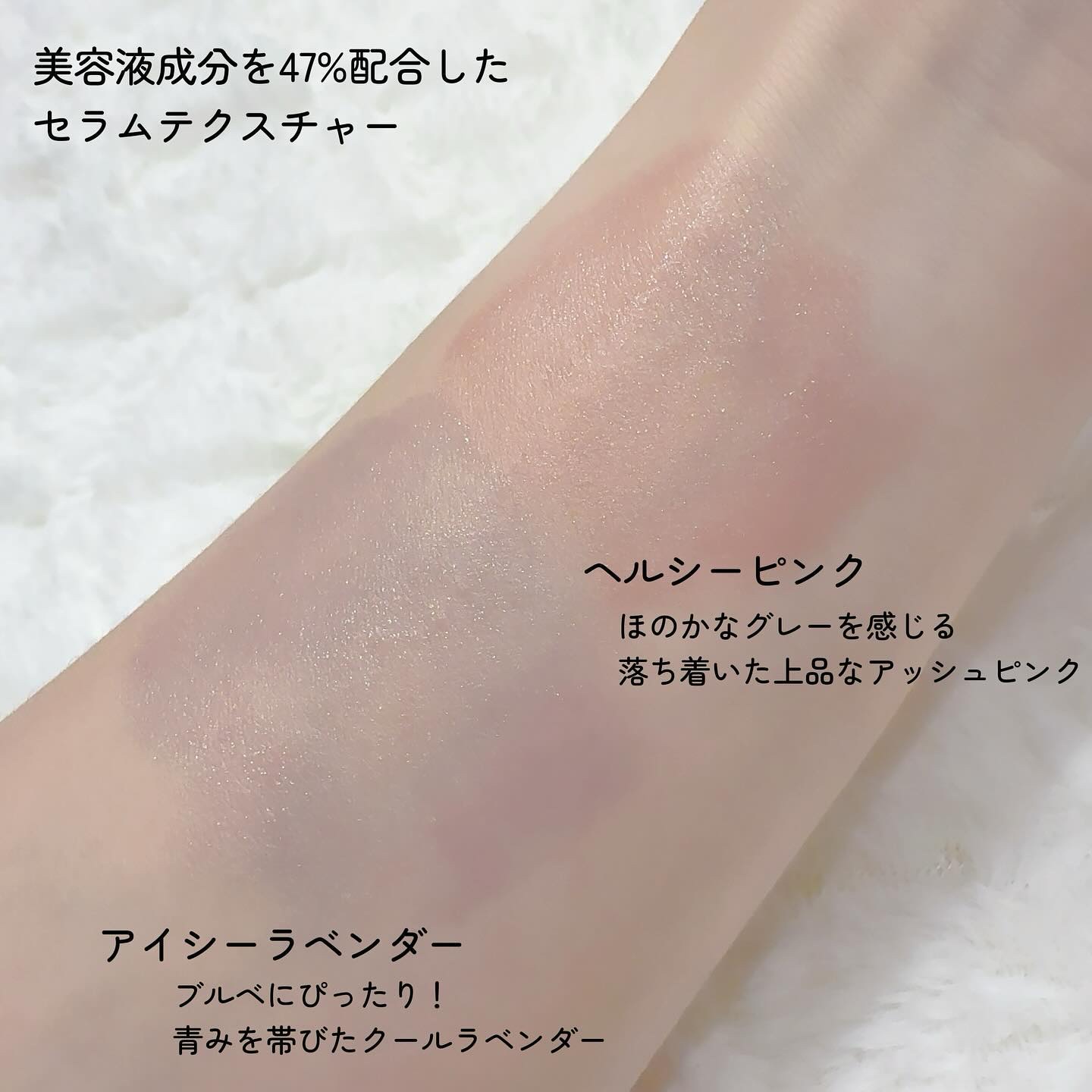 水分セラムのような、みずみずしいテクスチャーでしっとり血色感ほっぺに👏✨ アイシーラベンダーは肌トーンを綺麗に見せたい方に、ヘルシーピンクはじゅわっと上品な血色感を出したい方にオススメです🤍 みずみずしいしいテクスチャーで肌をうるっと見せてくれてなおかつ伸ばしやすいのにヨレにくいところも良かったです✨