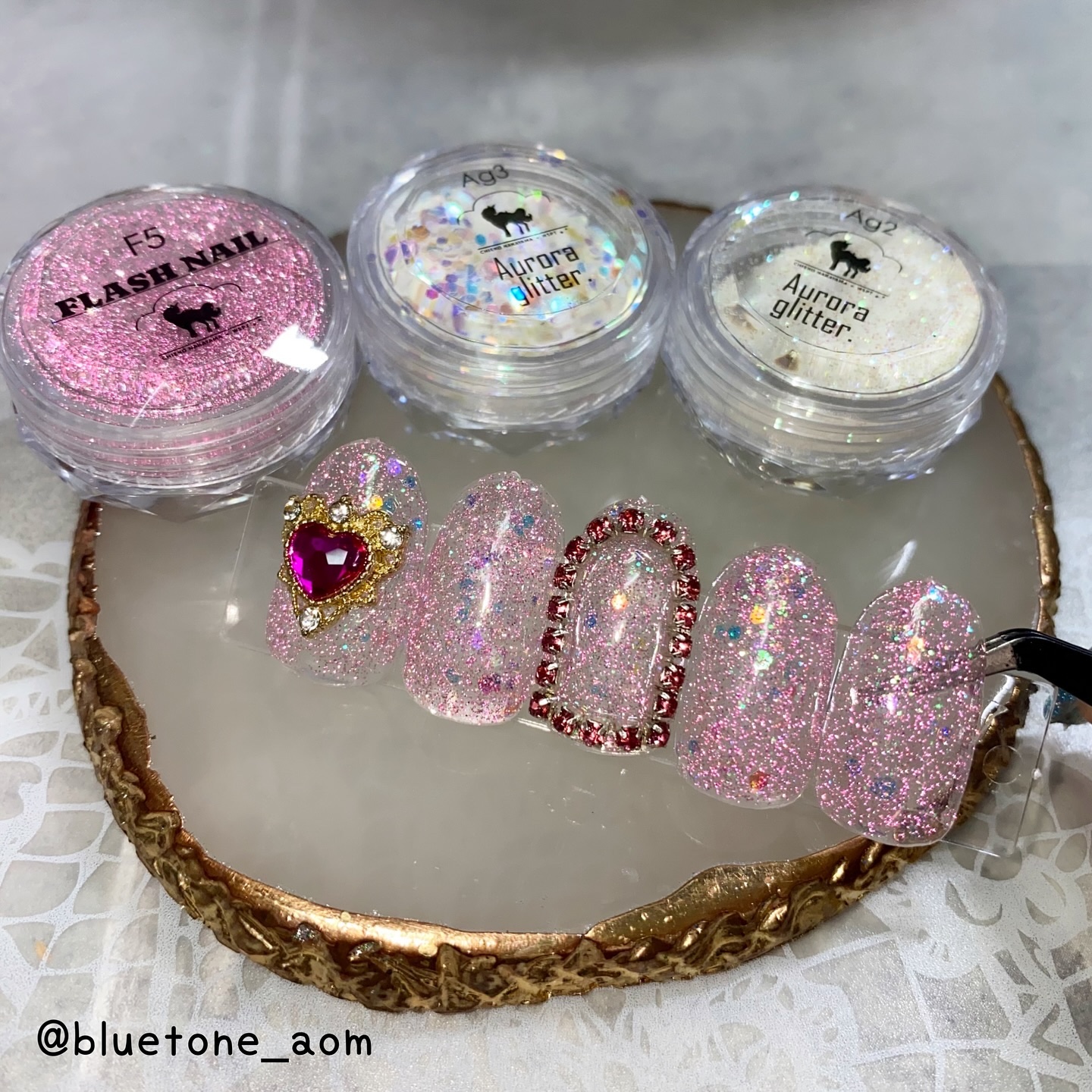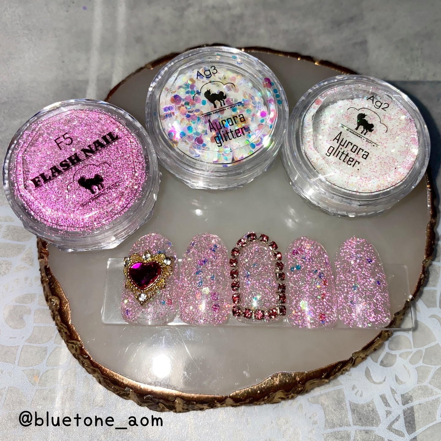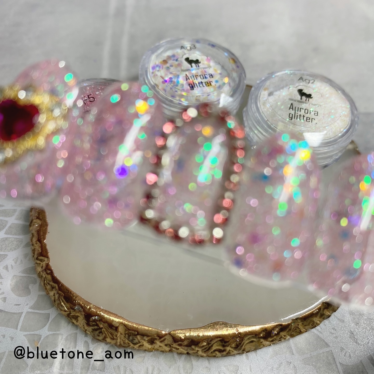ラメがしっかりしてるし クリアカラーが入ってるから オーロラパウダー無しでも 充分キラキラしました! 反射強めのフィルムなので 実物はもっと うるうるとキラキラが強いです! ビー玉みたい🥺 ネイルシール長持ちさせたいけど ちょっと飽きてきたな〜って時とかに 全然違った印象になるのでオススメです! Seriaのベースジェル 本当にうるうるネイルしやすいので オススメしたい🙆♀️