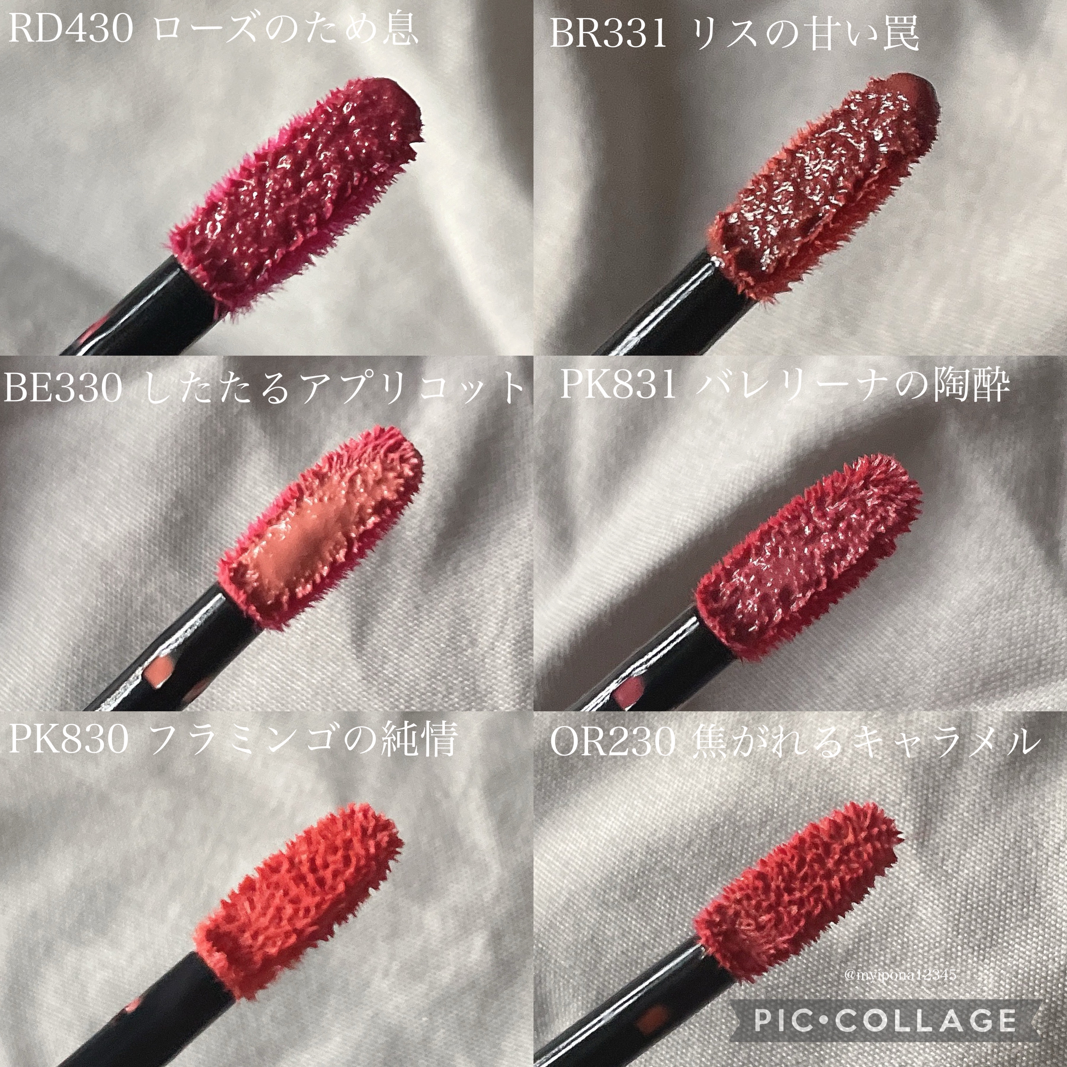 - <BE330 したたるアプリコット> 水、水添ポリイソブテン、BG、ダイマージリノレイル水添ロジン縮合物、リンゴ酸ジイソステアリル、ワセリン、ミネラルオイル、トリイソステアリン酸ポリグリセリル-2、TEA、エタノール、シロキクラゲエキス、ステビア葉/茎エキス、トコフェロール、ヒアルロン酸Na、PEG-10水添ヒマシ油、(アクリル酸Na/アクリロイルジメチルタウリンNa)コポリマー、(アクリレーツ/アクリル酸アルキル(C10-30))クロスポリマー、イソヘキサデカン、オレイン酸ソルビタン、カルボマー、スクワラン、ステアリン酸、ステアリン酸グリセリル、セテアリルアルコール、トリエチルヘキサノイン、ヒドロキシプロピルメチルセルロース、ベヘニルアルコール、ポリアクリル酸アンモニウム、ポリソルベート80、水酸化Al、フェノキシエタノール、酸化チタン、黄4、青1、赤227、橙205 <BE332 みつばちのワルツ> 水、水添ポリイソブテン、BG、ダイマージリノレイル水添ロジン縮合物、リンゴ酸ジイソステアリル、ワセリン、ミネラルオイル、トリイソステアリン酸ポリグリセリル-2、TEA、エタノール、ステビア葉/茎エキス、トコフェロール、ヒアルロン酸Na、PEG-10水添ヒマシ油、(アクリル酸Na/アクリロイルジメチルタウリンNa)コポリマー、(アクリレーツ/アクリル酸アルキル(C10-30))クロスポリマー、イソヘキサデカン、オレイン酸ソルビタン、カルボマー、シロキクラゲ多糖体、スクワラン、ステアリン酸、ステアリン酸グリセリル、セテアリルアルコール、トリエチルヘキサノイン、ヒドロキシプロピルメチルセルロース、ベヘニルアルコール、ポリアクリル酸アンモニウム、ポリソルベート80、水酸化Al、フェノキシエタノール、酸化チタン、黄4、青1、赤227、橙205 <BR331 リスの甘い罠> 水、水添ポリイソブテン、BG、ダイマージリノレイル水添ロジン縮合物、リンゴ酸ジイソステアリル、ワセリン、ミネラルオイル、トリイソステアリン酸ポリグリセリル-2、TEA、エタノール、シロキクラゲエキス、ステビア葉/茎エキス、トコフェロール、ヒアルロン酸Na、PEG-10水添ヒマシ油、(アクリル酸Na/アクリロイルジメチルタウリンNa)コポリマー、(アクリレーツ/アクリル酸アルキル(C10-30))クロスポリマー、イソヘキサデカン、オレイン酸ソルビタン、カルボマー、スクワラン、ステアリン酸、ステアリン酸グリセリル、セテアリルアルコール、トリエチルヘキサノイン、ヒドロキシプロピルメチルセルロース、ベヘニルアルコール、ポリソルベート80、フェノキシエタノール、黄4、青1、赤227、橙205 <OR230 焦がれるキャラメル> 水、水添ポリイソブテン、BG、ダイマージリノレイル水添ロジン縮合物、リンゴ酸ジイソステアリル、ワセリン、ミネラルオイル、トリイソステアリン酸ポリグリセリル-2、TEA、エタノール、シロキクラゲエキス、ステビア葉/茎エキス、トコフェロール、ヒアルロン酸Na、PEG-10水添ヒマシ油、(アクリル酸Na/アクリロイルジメチルタウリンNa)コポリマー、(アクリレーツ/アクリル酸アルキル(C10-30))クロスポリマー、イソヘキサデカン、オレイン酸ソルビタン、カルボマー、スクワラン、ステアリン酸、ステアリン酸グリセリル、セテアリルアルコール、トリエチルヘキサノイン、ヒドロキシプロピルメチルセルロース、ベヘニルアルコール、ポリアクリル酸アンモニウム、ポリソルベート80、水酸化Al、フェノキシエタノール、酸化チタン、黄4、青1、赤227、橙205 <PK830 フラミンゴの純情> 水、水添ポリイソブテン、BG、ダイマージリノレイル水添ロジン縮合物、リンゴ酸ジイソステアリル、ワセリン、ミネラルオイル、トリイソステアリン酸ポリグリセリル-2、TEA、エタノール、シロキクラゲエキス、ステビア葉/茎エキス、トコフェロール、ヒアルロン酸Na、PEG-10水添ヒマシ油、(アクリル酸Na/アクリロイルジメチルタウリンNa)コポリマー、(アクリレーツ/アクリル酸アルキル(C10-30))クロスポリマー、イソヘキサデカン、オレイン酸ソルビタン、カルボマー、スクワラン、ステアリン酸、ステアリン酸グリセリル、セテアリルアルコール、トリエチルヘキサノイン、ヒドロキシプロピルメチルセルロース、ベヘニルアルコール、ポリアクリル酸アンモニウム、ポリソルベート80、水酸化Al、フェノキシエタノール、酸化チタン、黄4、青1、赤227、橙205 <PK831 バレリーナの陶酔> 水、水添ポリイソブテン、BG、ダイマージリノレイル水添ロジン縮合物、リンゴ酸ジイソステアリル、ワセリン、ミネラルオイル、トリイソステアリン酸ポリグリセリル-2、TEA、エタノール、シロキクラゲエキス、ステビア葉/茎エキス、トコフェロール、ヒアルロン酸Na、PEG-10水添ヒマシ油、(アクリル酸Na/アクリロイルジメチルタウリンNa)コポリマー、(アクリレーツ/アクリル酸アルキル(C10-30))クロスポリマー、イソヘキサデカン、オレイン酸ソルビタン、カルボマー、スクワラン、ステアリン酸、ステアリン酸グリセリル、セテアリルアルコール、トリエチルヘキ