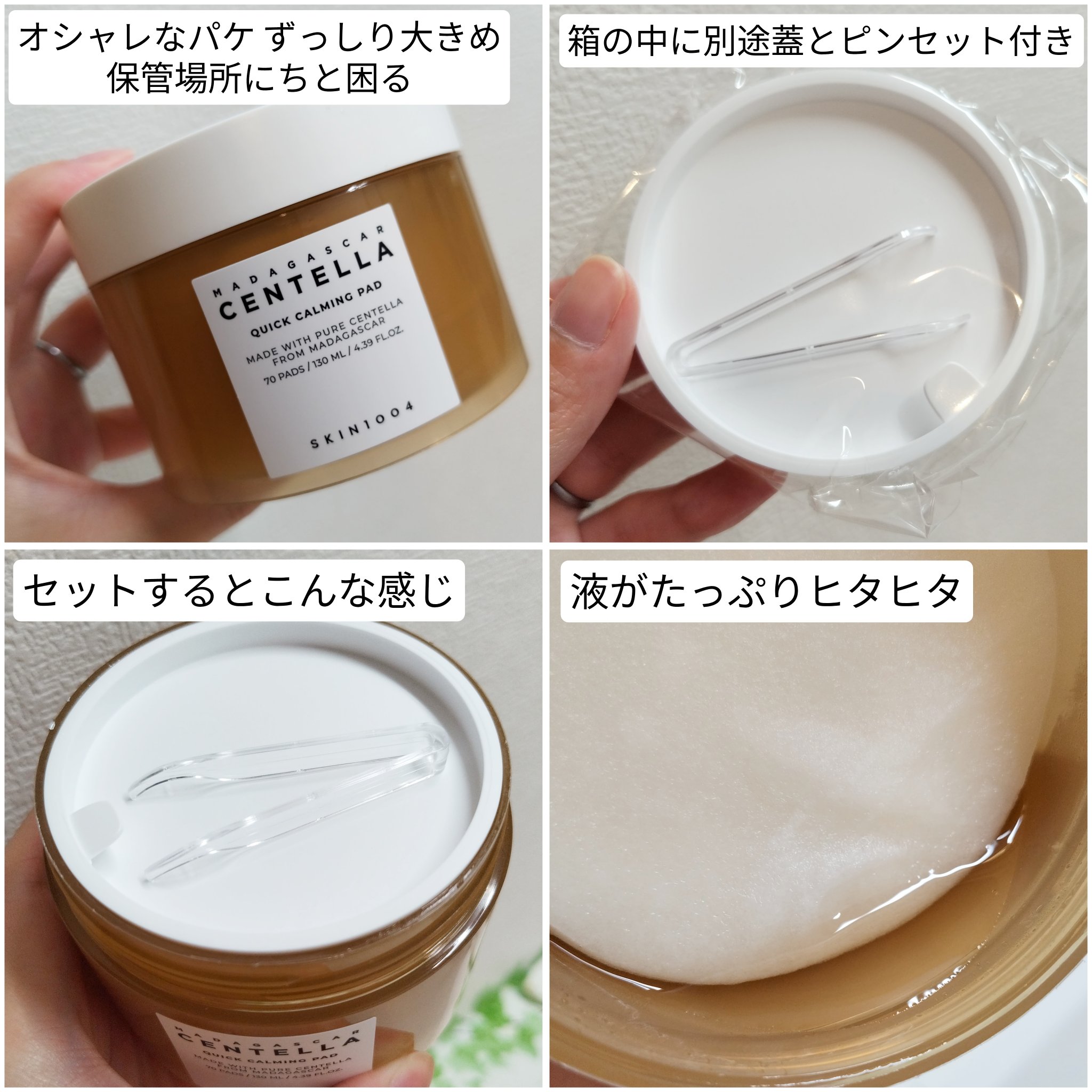 SKIN1004センテラクイックカーミングパッド70枚1分で叶える鎮静・水分チャージ10種類の成分*3のみ使用⬇️主に・マダカスカル産ツボクサエキス・弱酸性PH・パンテノール・ヒアルロン酸など配合・*3全成分EWGグリーン等級の鎮静💚メイク前...