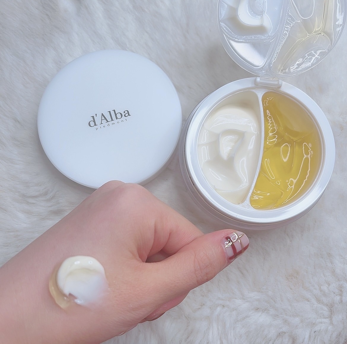 #PRd'Albaのホワイトトリュフダブルセラムアンドクリーム🤍水分たっぷりのクリームと、こっくりとしたクリームに分かれているから自分のお肌状態に合わせてカスタマイズ🫶🏻アクアセラムは、水分チャージをしてお肌を整えてくれる✨インテンスクリーム...
