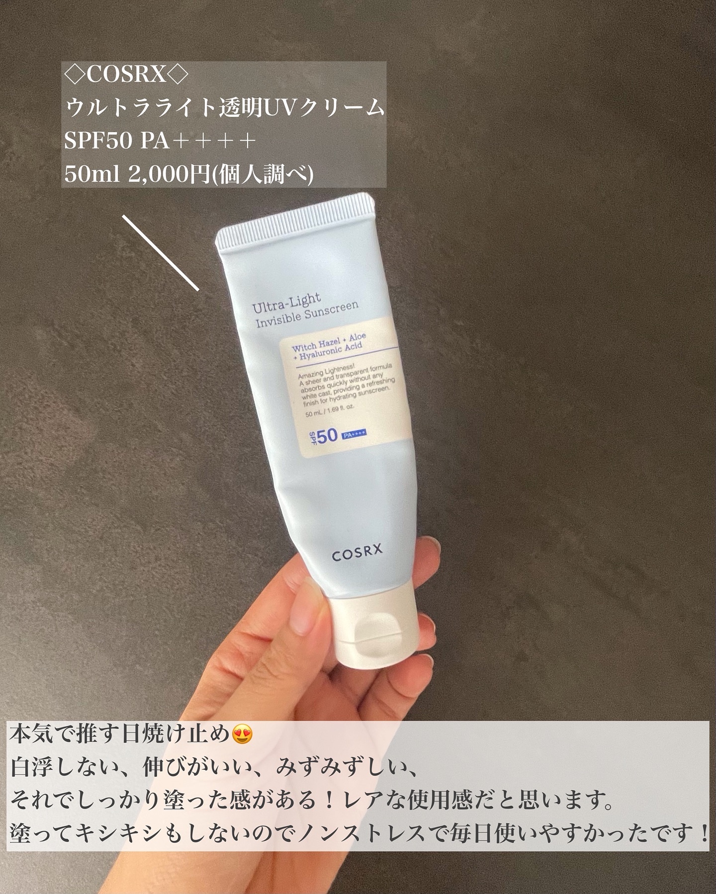 COSRX ウルトラライト透明UVクリーム | 1,650円 |