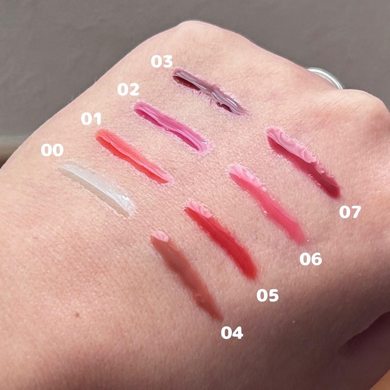 ジューシーベリープランピングリップオイル 00〜07の8種類 メイクアップ効果で発色・プランピング・保湿ケア コレを全部🙆♀️ 体温でとろける、濃厚テクスチャーで高密着💮