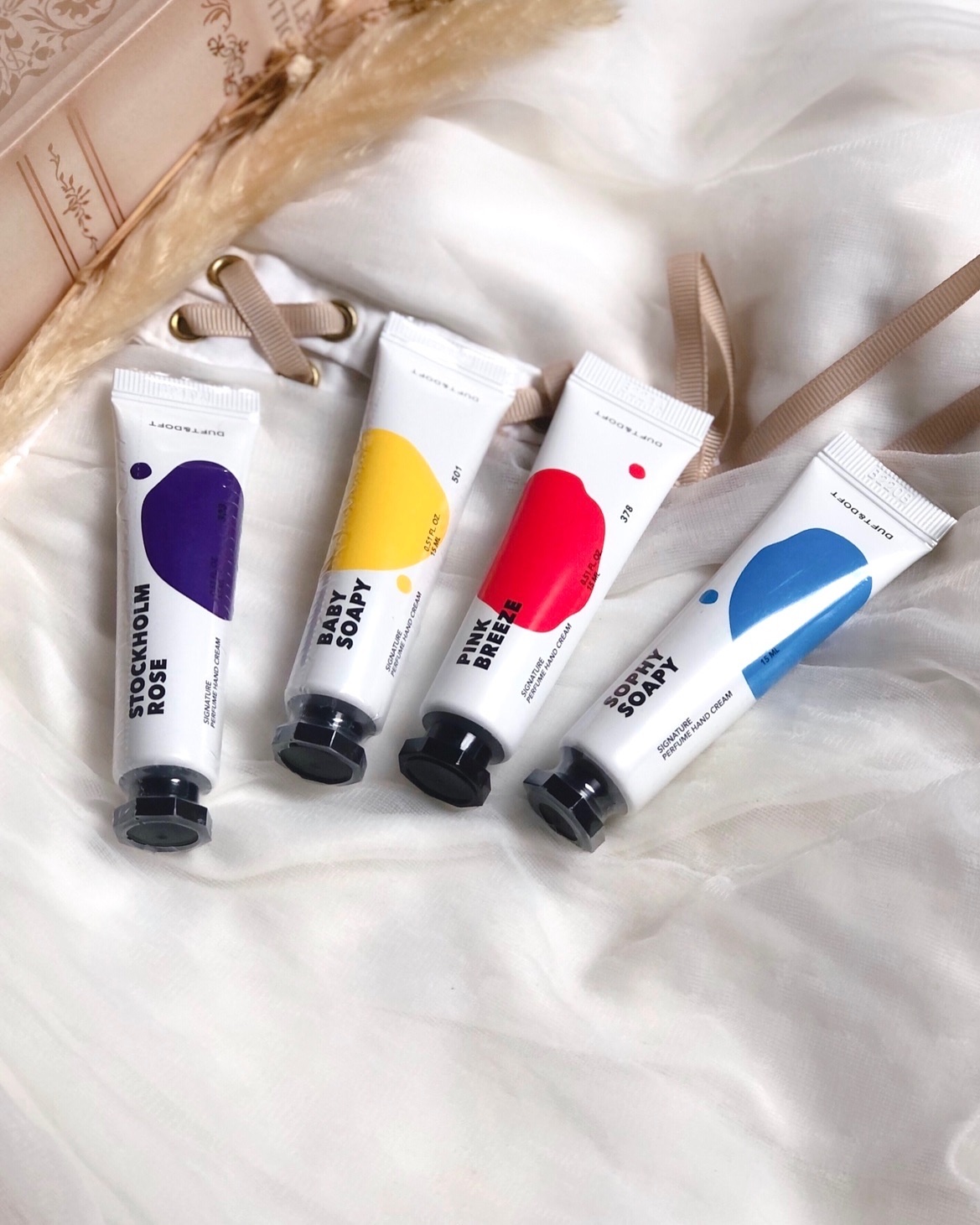 韓国の国民的パフュームハンドクリームDUFT & DOFTの「シグネチャーパフュームハンドクリーム」がLAWSONでも販売開始〜👏🏻 ̖́- シアバター、ビタミンE誘導体、ヒアルロン酸などを配合🙌 柔らかめのクリームで、軽やかでサラッとしたテクスチャーが特徴。 香りはどれも結構強めなので、香り好きさんにおすすめ。香水のように香るから、手だけでなく練り香水として使うのも良さそう💡