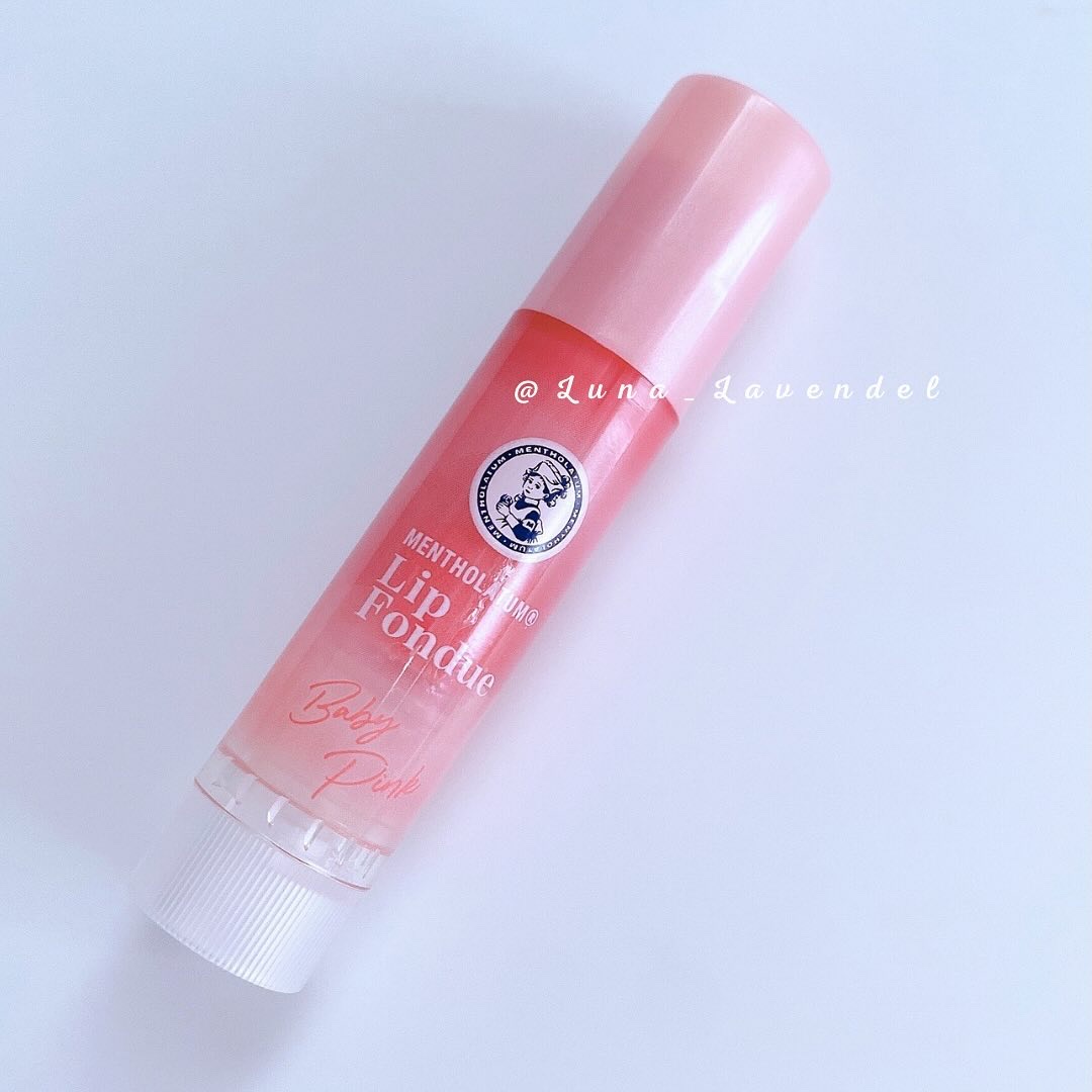 メンソレータム リップフォンデュベビーピンク¥693 他にも、ヌードベージュ、プラムレッドがあり3色展開です うさぎ舌のような淡いピンク!🩷🐰 コーラル感はあまりなく、青みピンクです 夜塗っても翌朝まで保湿が長続きします!そこは大好き!