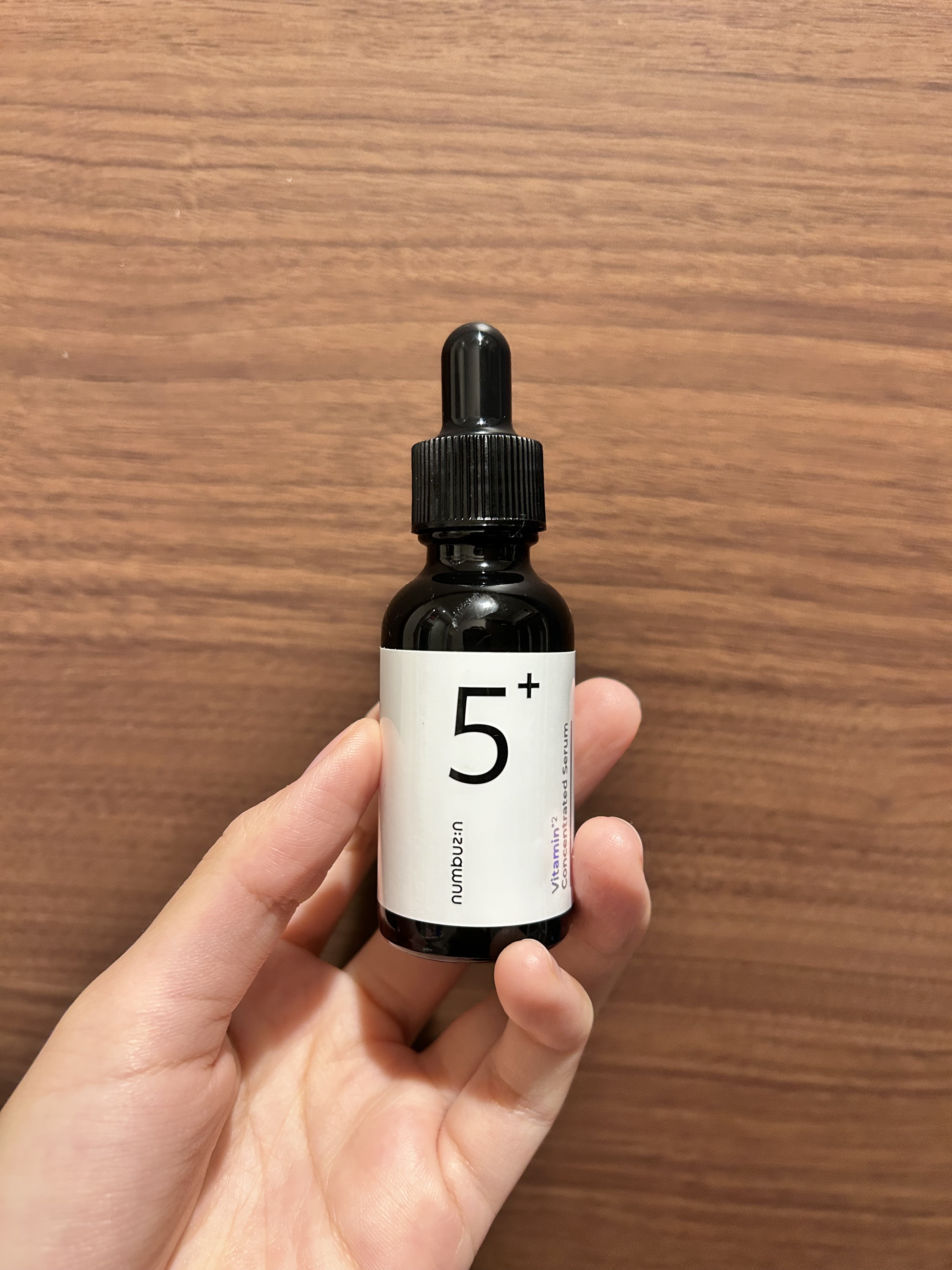 ナンバーズインは韓国の肌悩み別のスキンケアブランドになります。 今回使用した5番はグルタチオンやナイアシンアミド、トラネキサム酸などの美容成分が配合されたシリーズになるので、 美容液は少しトロンとしたテクスチャーで、香りなどはありません❢